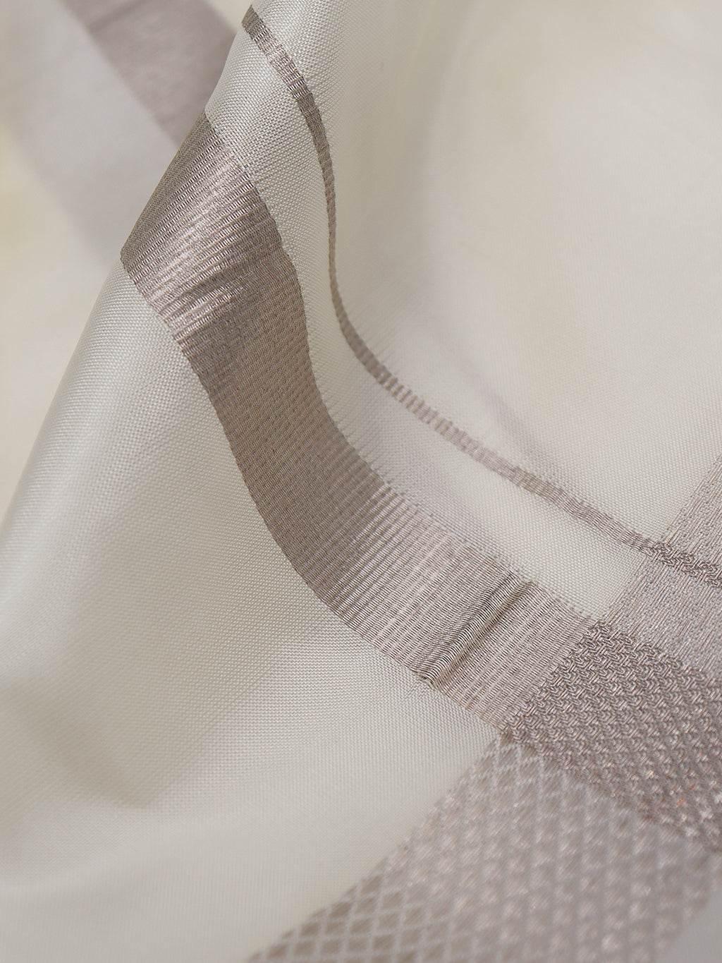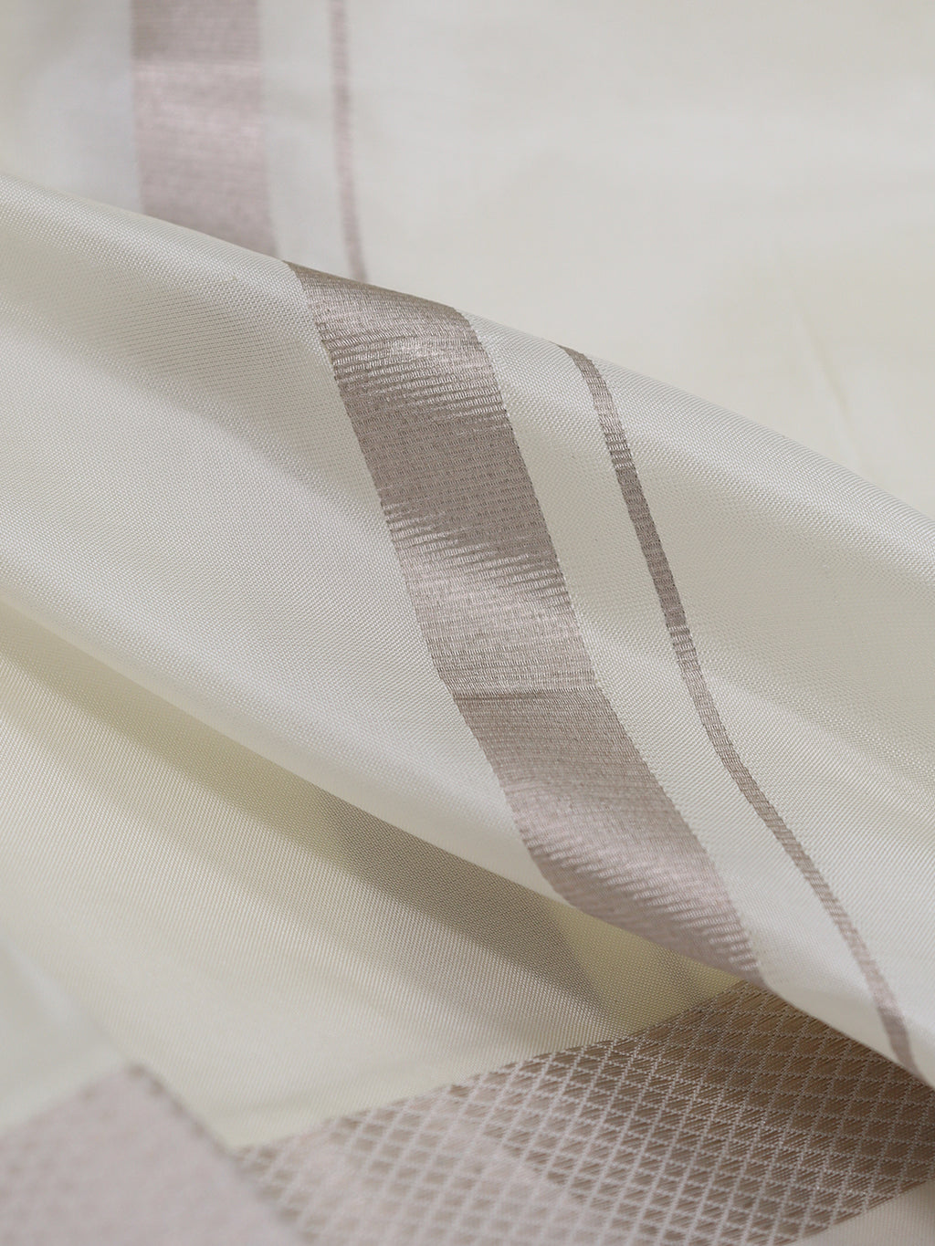 Men Silk Cream Double Layer Dhoti 1" inch Silver Border Suba Vivaga