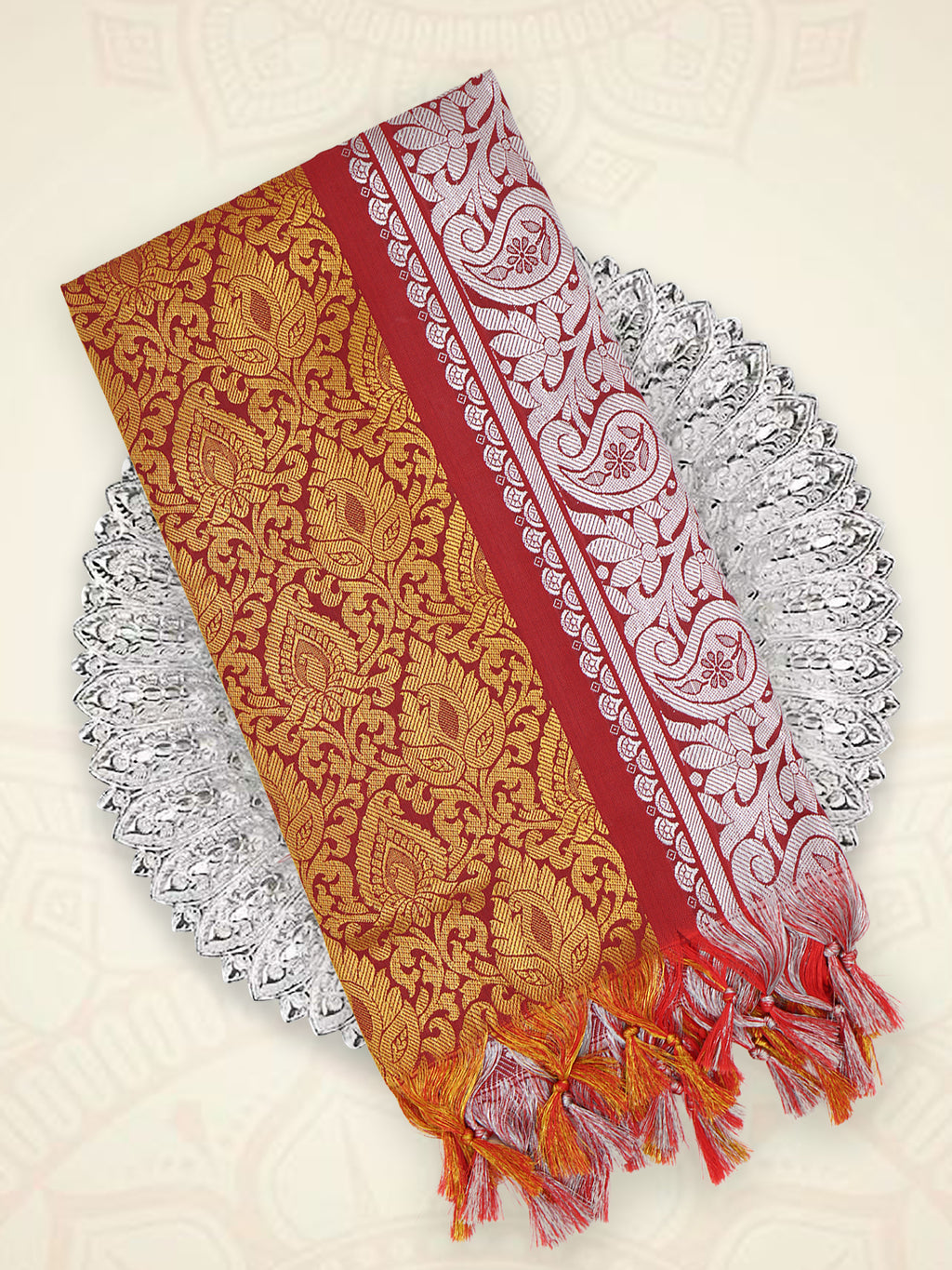 Elevate every sacred moment with the Art Silk Ponnadai Shawl — a devotional garment woven with tradition and reverence. Symbolizing honor and spiritual respect, this shawl is ideal for presenting to gurus, elders, temple priests, or as a divine offering to deities. Its shimmering art silk texture and intricate zari border reflect the beauty of our spiritual heritage.