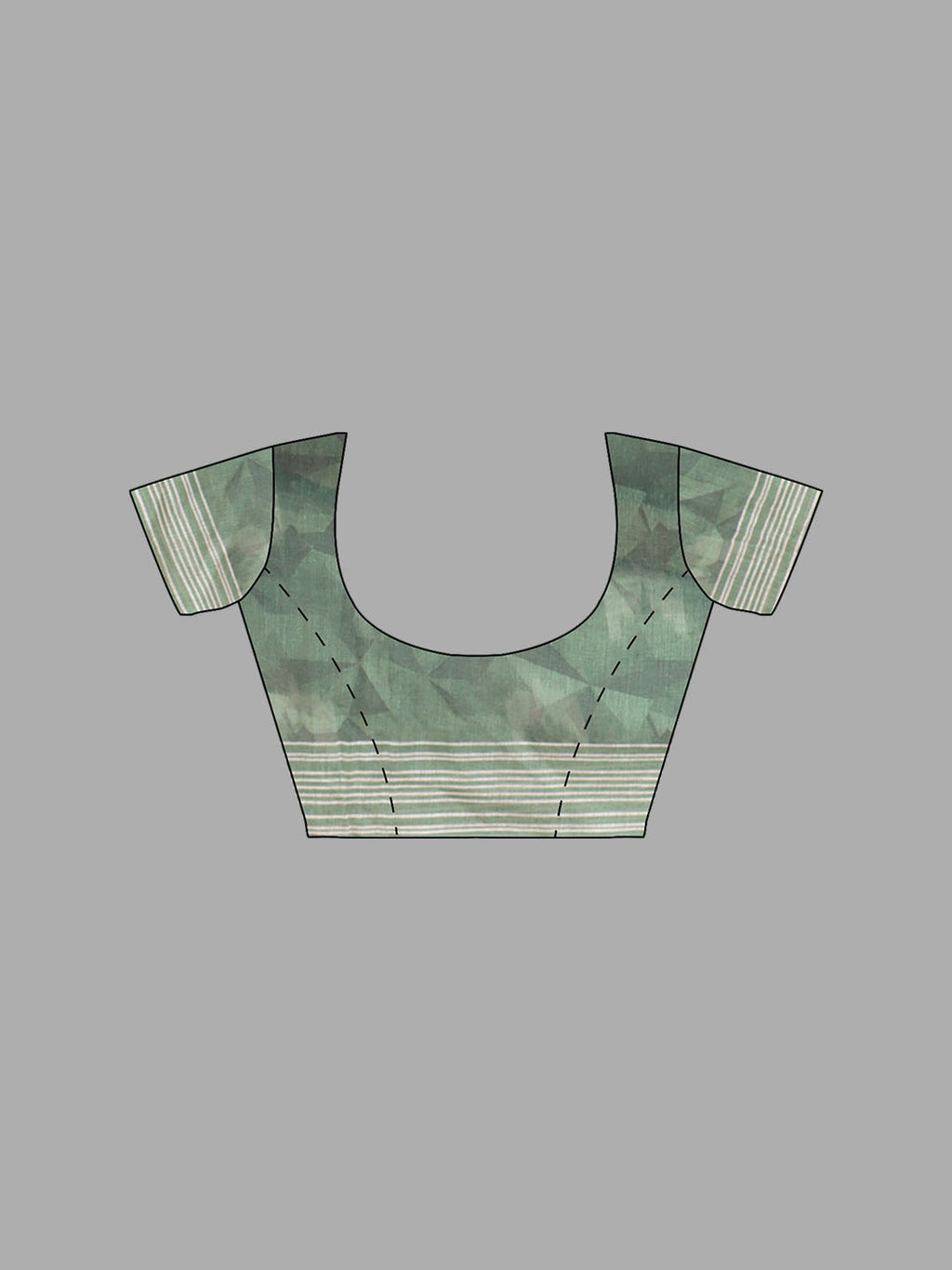 Women Green Semi Chanderi Cotton Printed Saree SC74