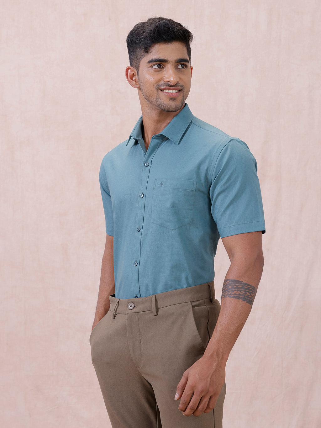 Men Cotton Rich Shirt DK Teal Green T64 ANT7