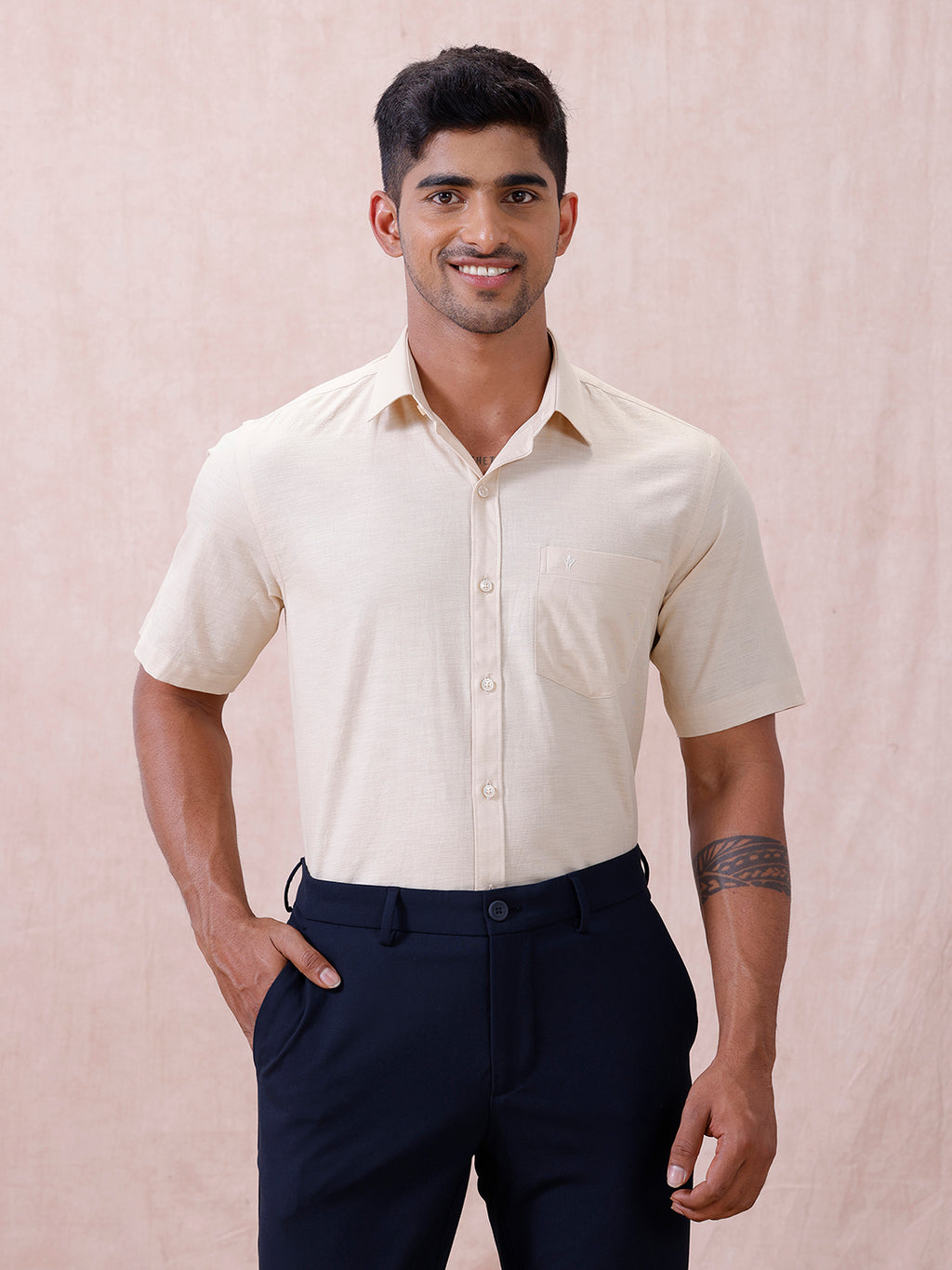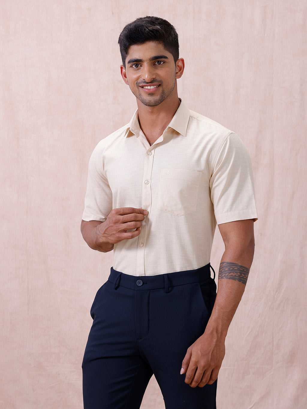 Men Cotton Rich Shirt LT Beige T64 ANT6