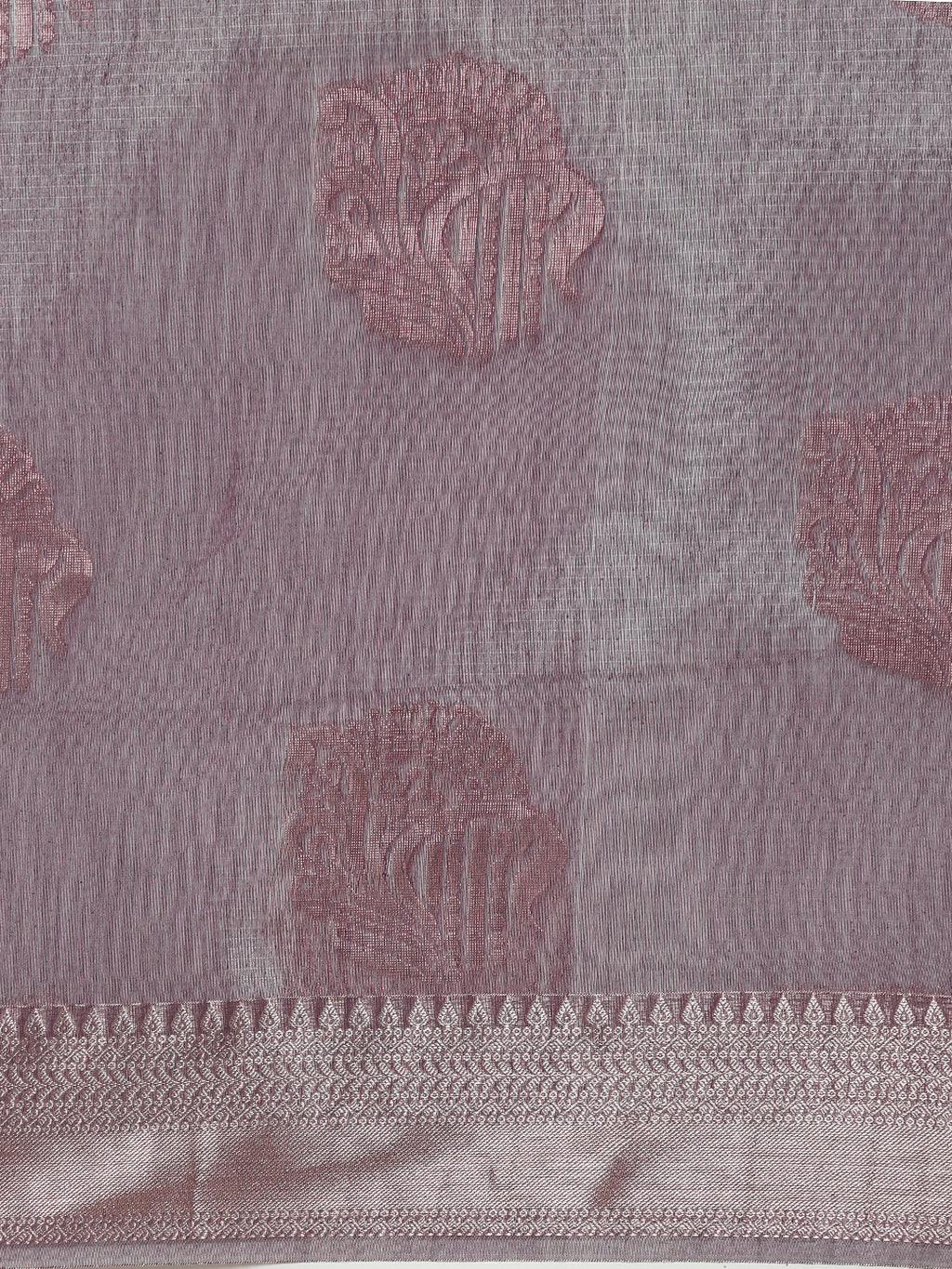 Women Light Purple Kora Cotton Fancy Saree SK110