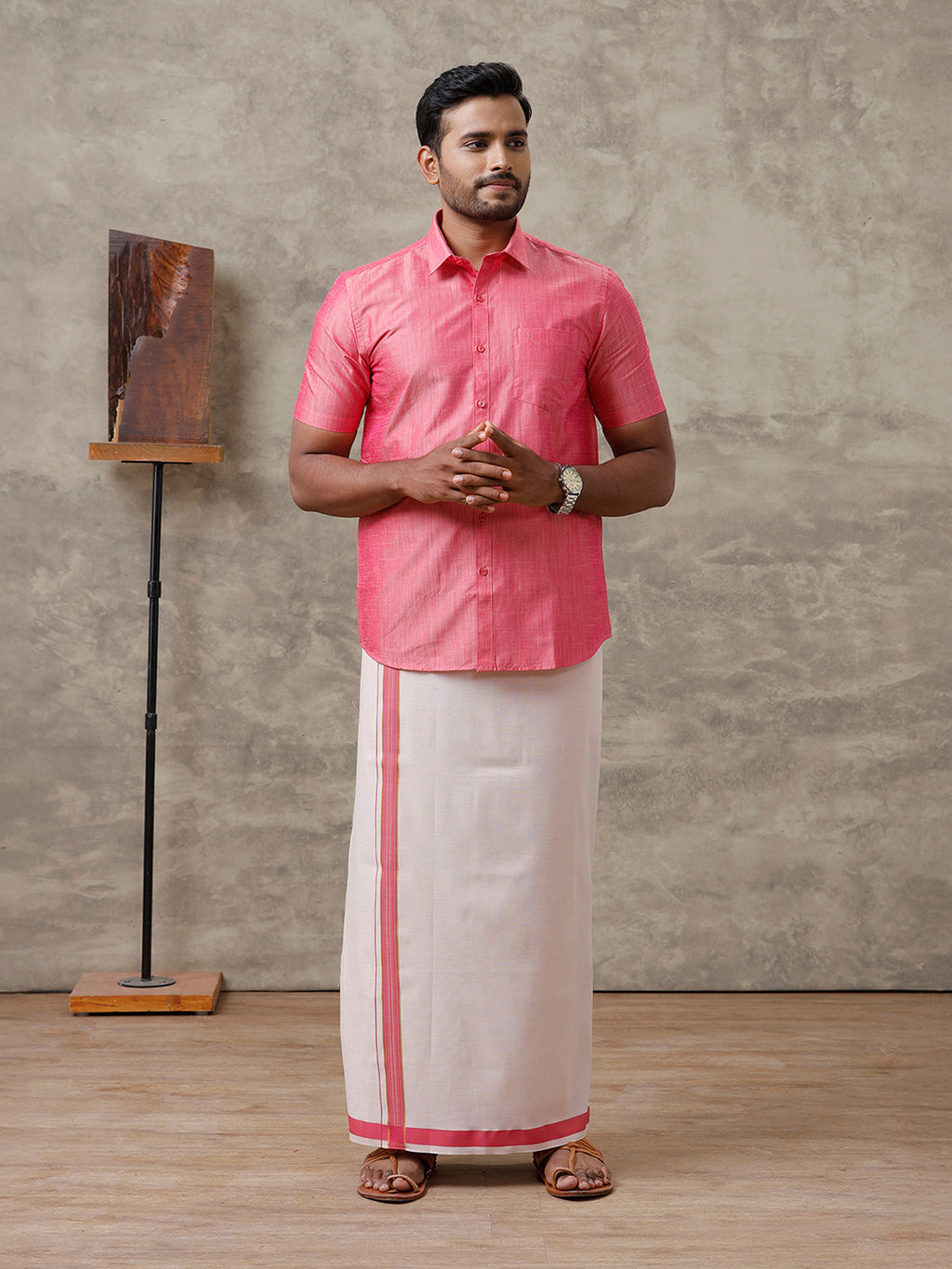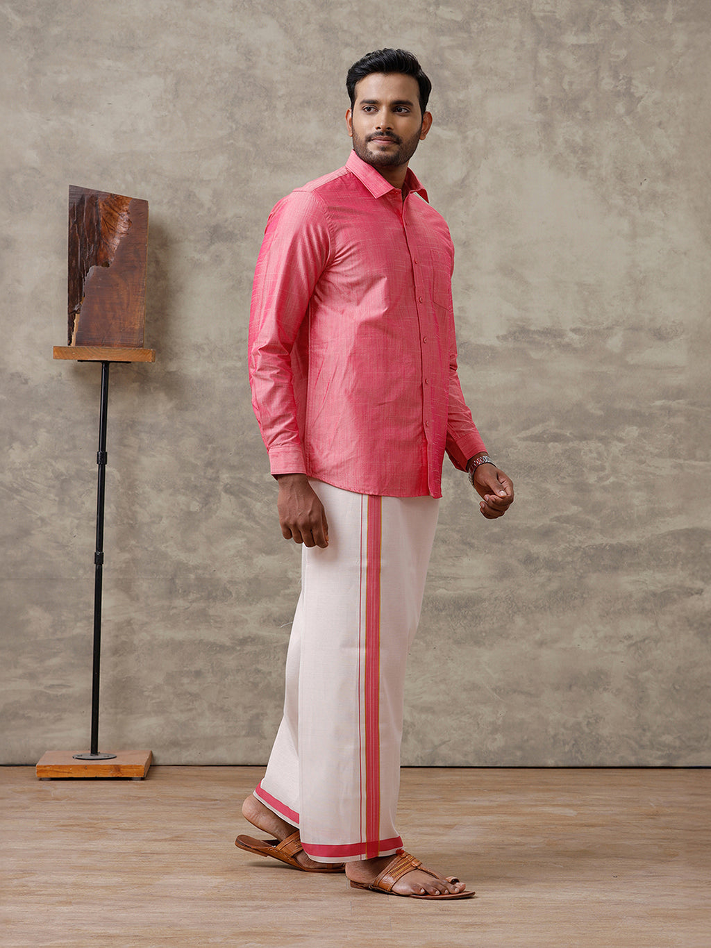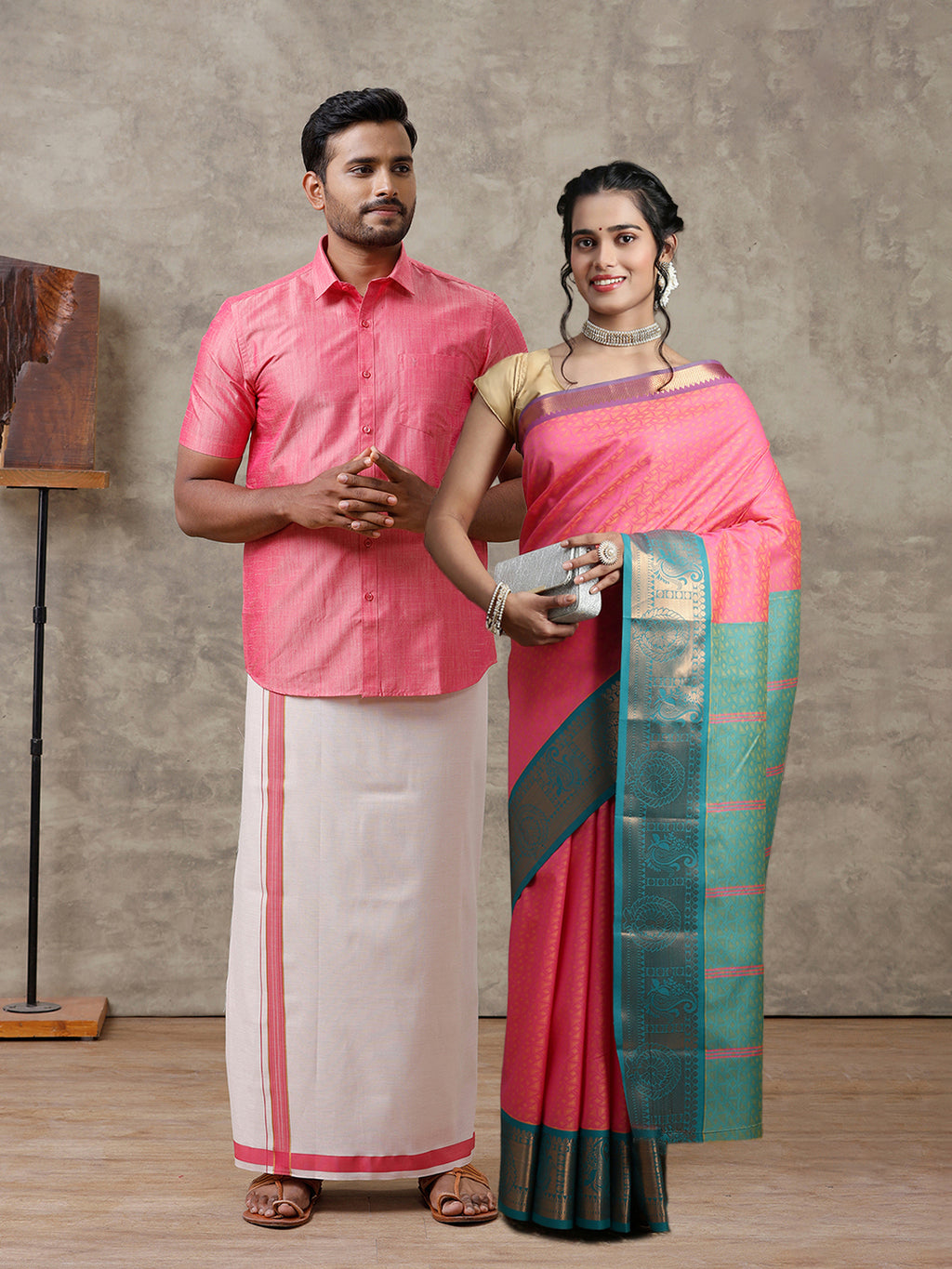 Couple Combo Shirt & Dhoti Set with Saree Pink ASS118