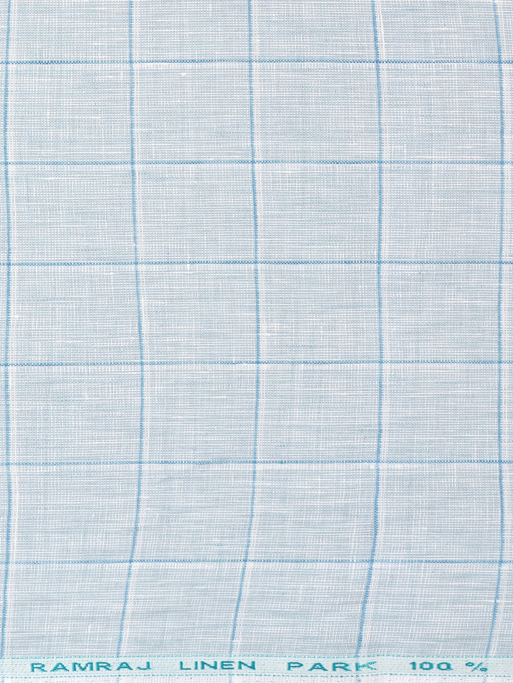 Men 100% Premium Linen Checked Blue Shirt Fabric Texena