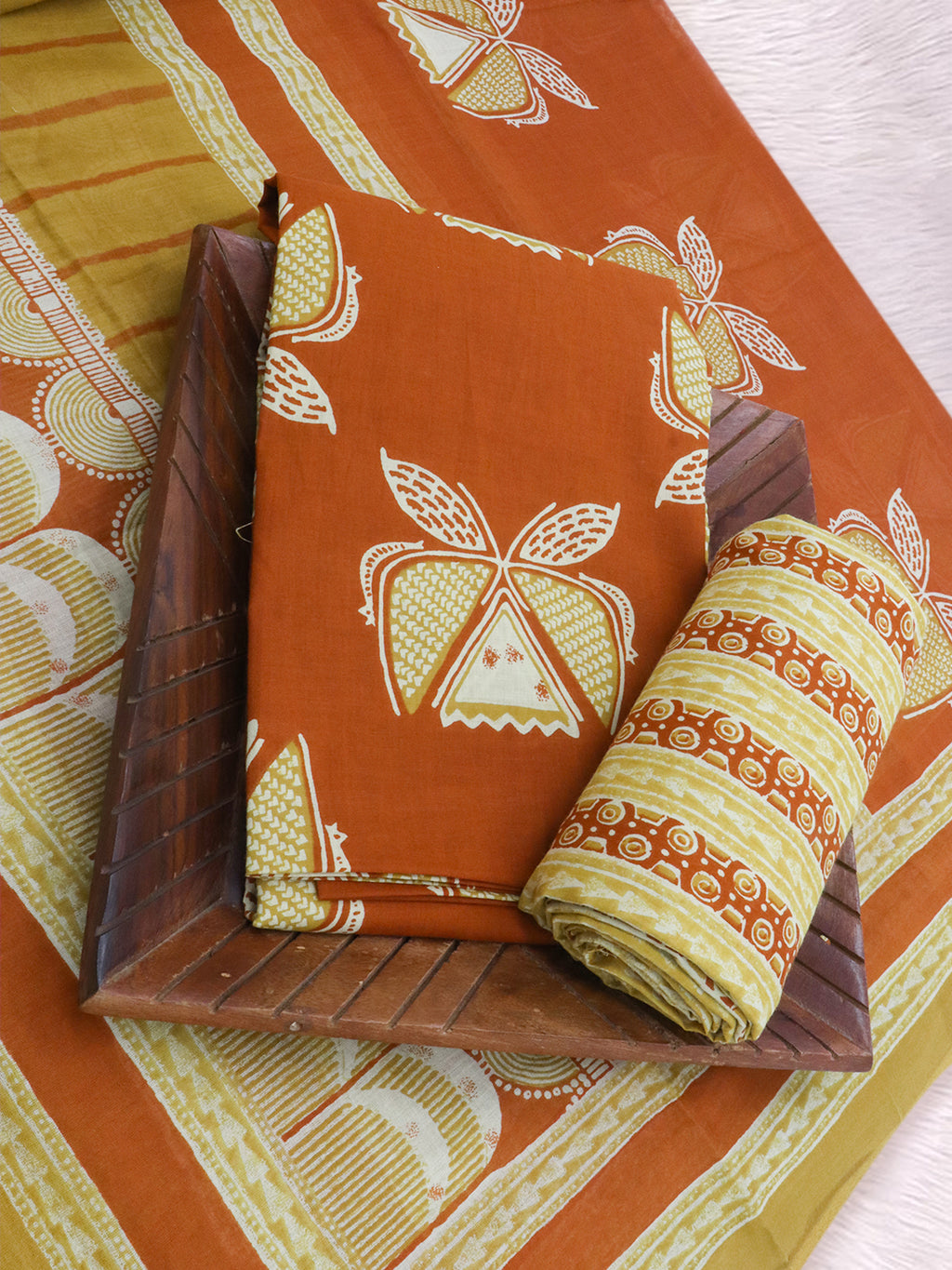 Women Pure Cotton Printed Dress Material Mustard with Rust DM344