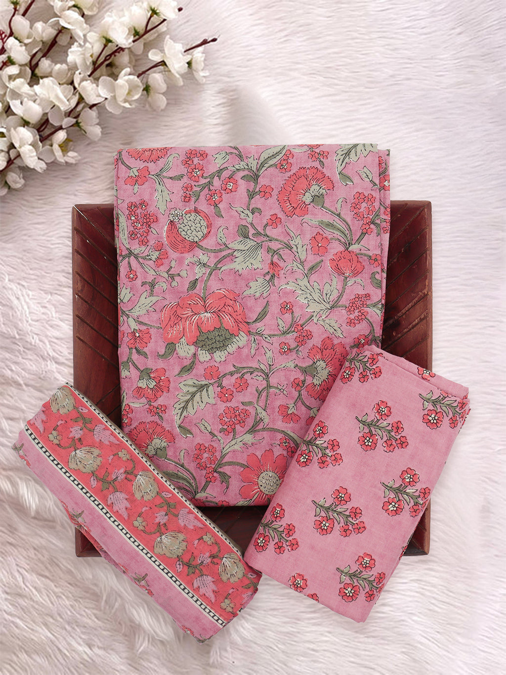 Women’s Pure Cotton Printed Dress Material featuring Top, Pant, and Dupatta. Made from soft, breathable cotton for all-day comfort, this unstitched set is perfect for daily and casual wear. The elegant printed design and dark blue color offer a stylish yet versatile look, ideal for office or everyday use.
