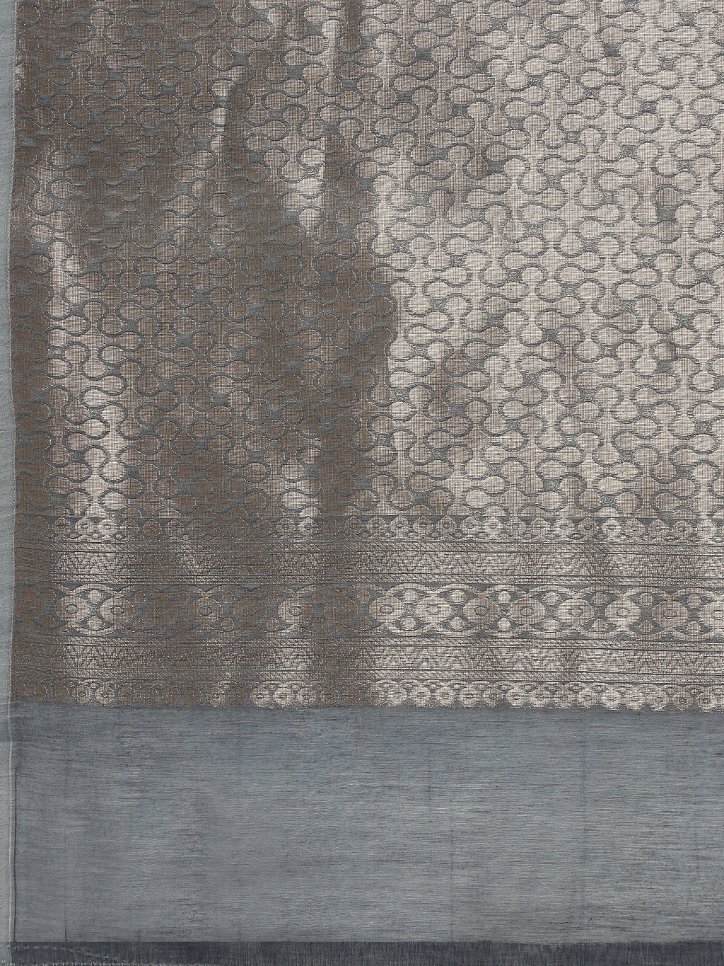 Women Semi Kora Cotton Dark Greyish Blue Saree SK123