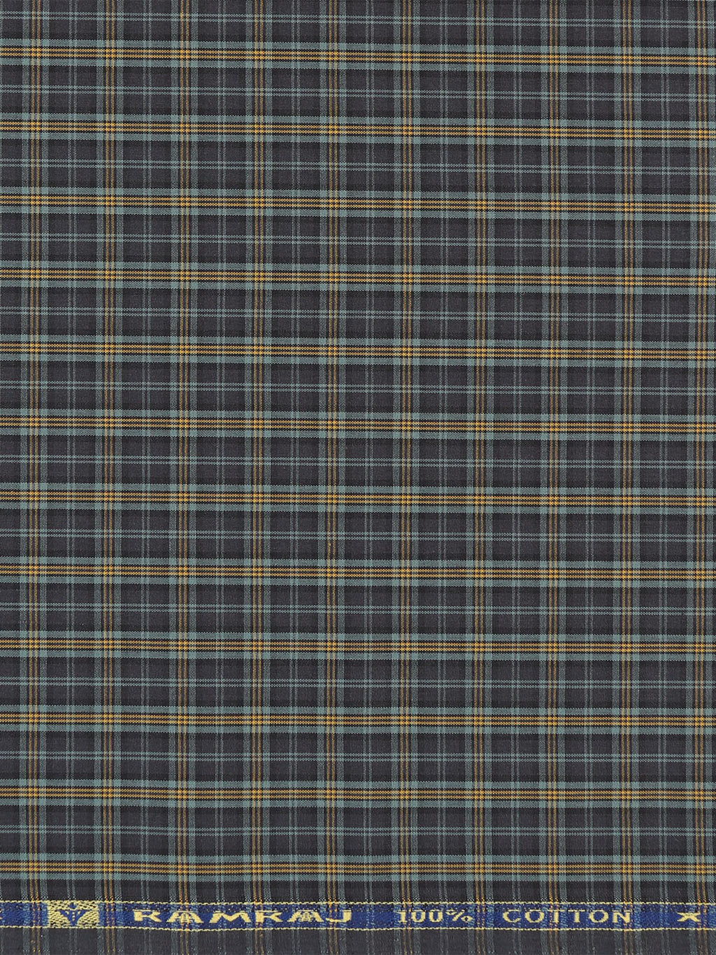 Men 100% Cotton Checked Shirt Fabric Dark Blue Vibgiyor Bit