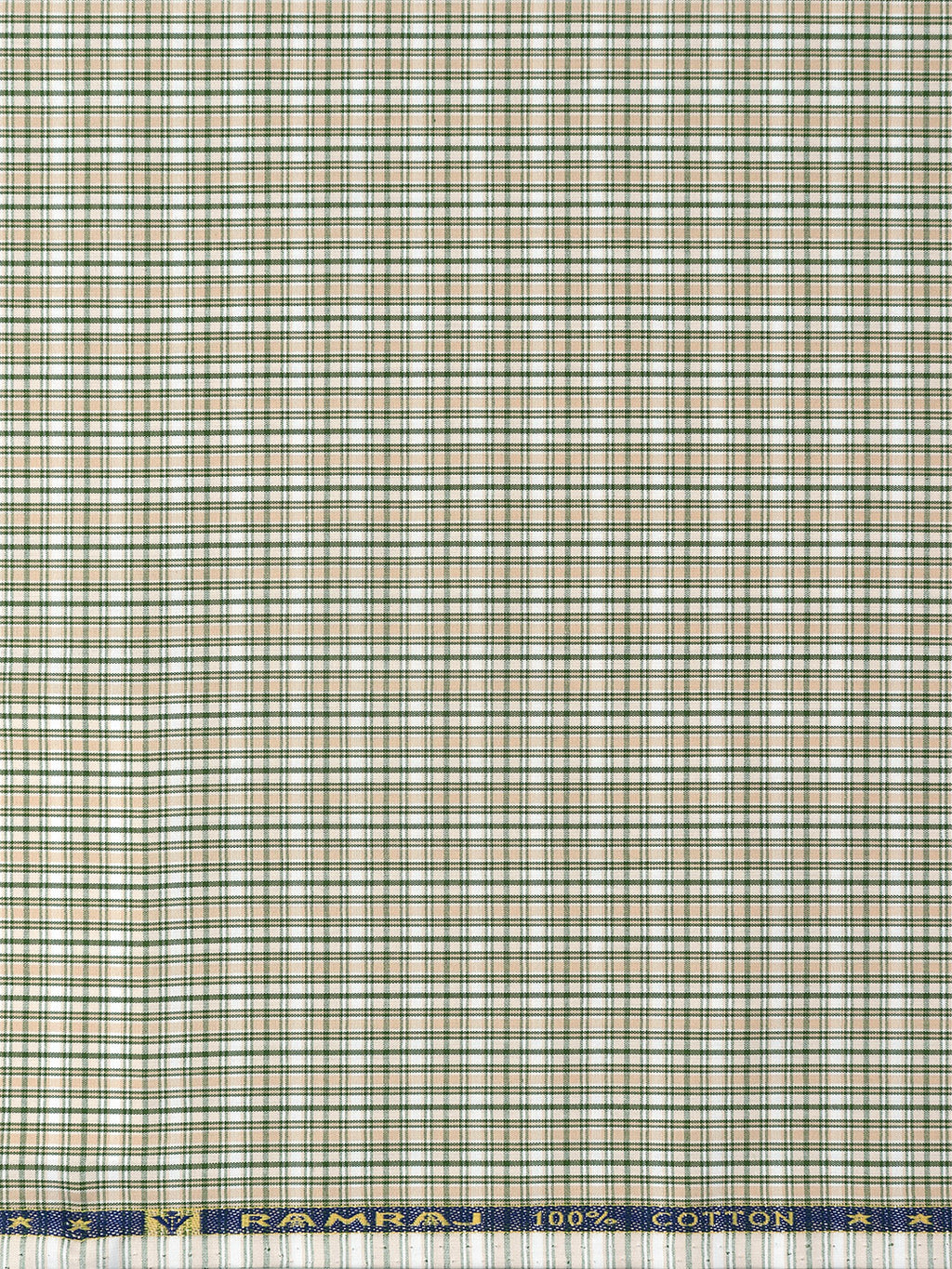 Men 100% Cotton Checked Shirt Fabric Green with Peach Vibgiyor Bit