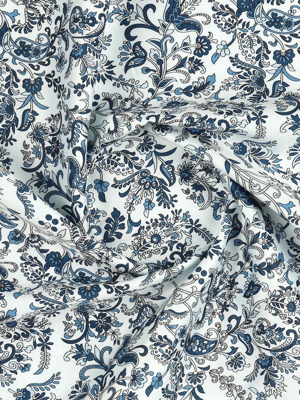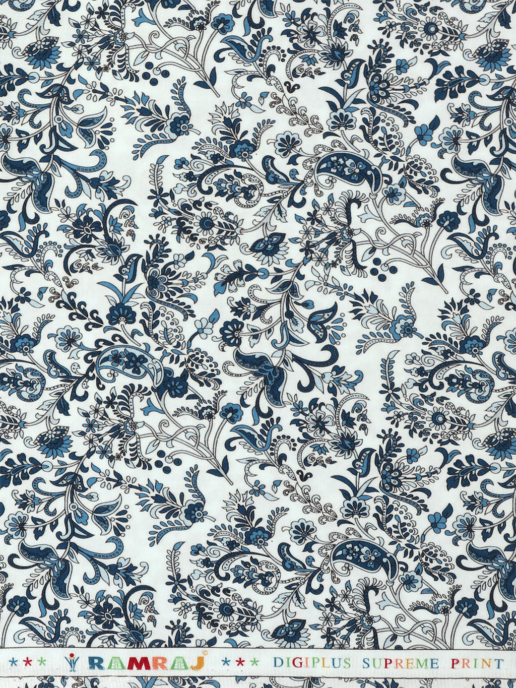 Men Cotton Blend White with Blue Printed Shirt Fabric Savoy