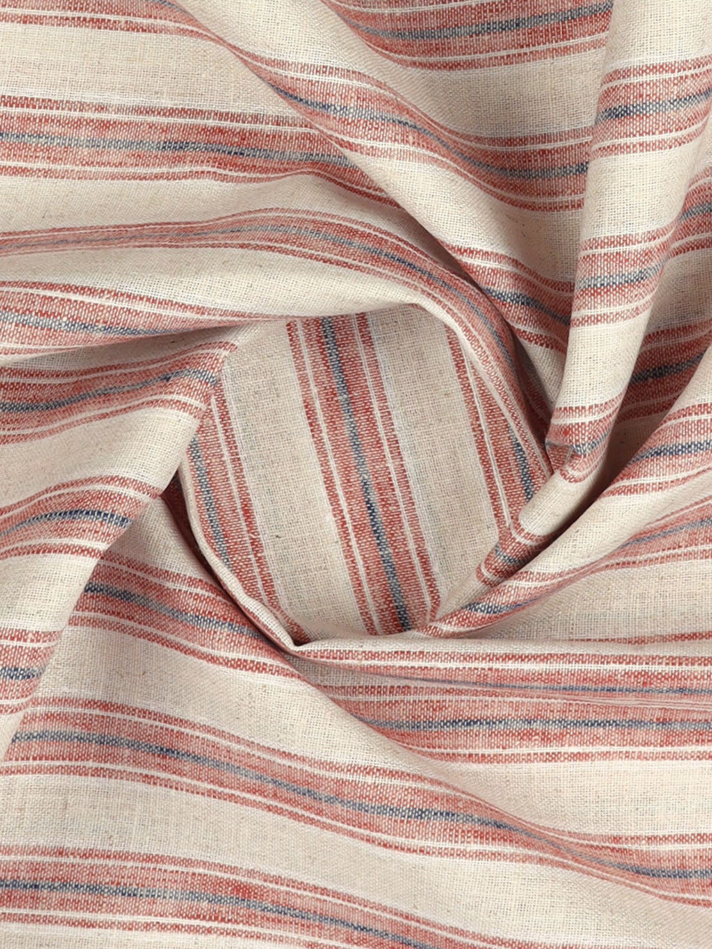 Men Cotton Rich Striped Shirt Fabric Cream with Red HI-Tech