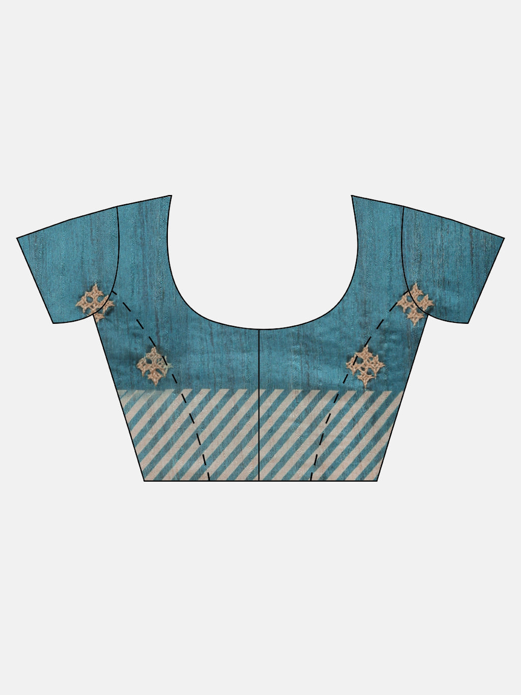 Women Blue with Brown Semi Raw Silk Embroidered Saree SRS113