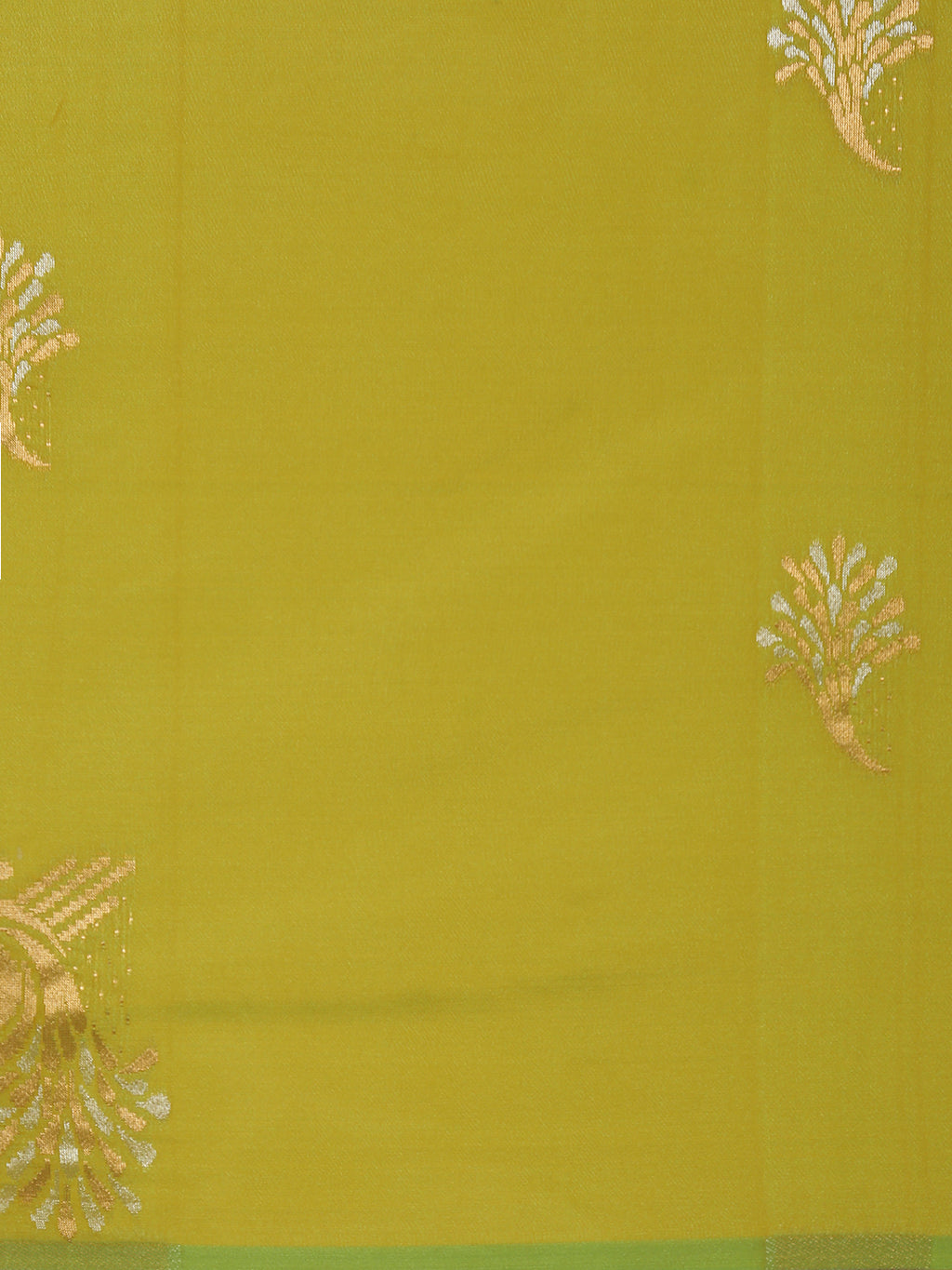 Women Yellowish Green Semi Soft Silk Saree SS383