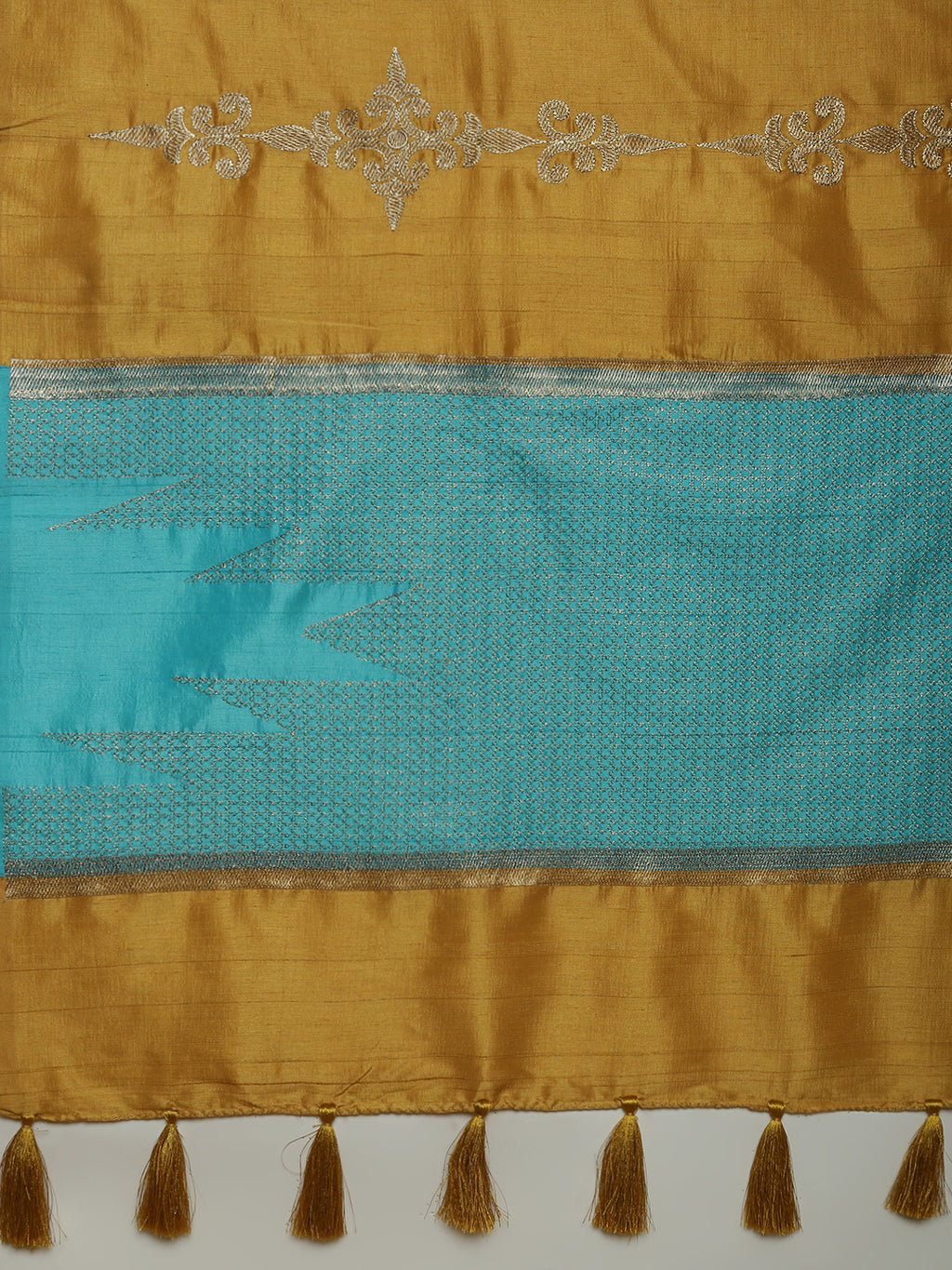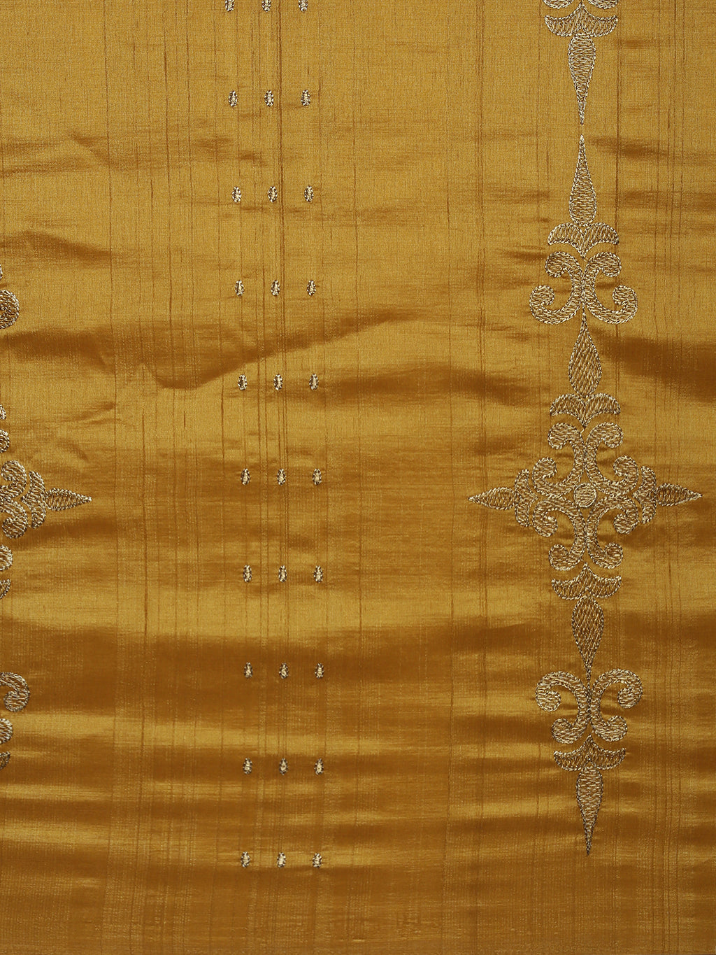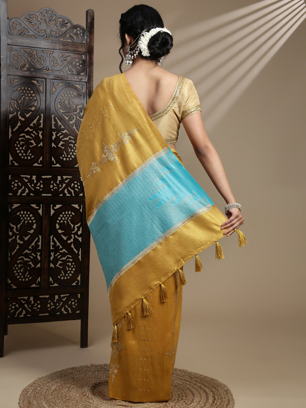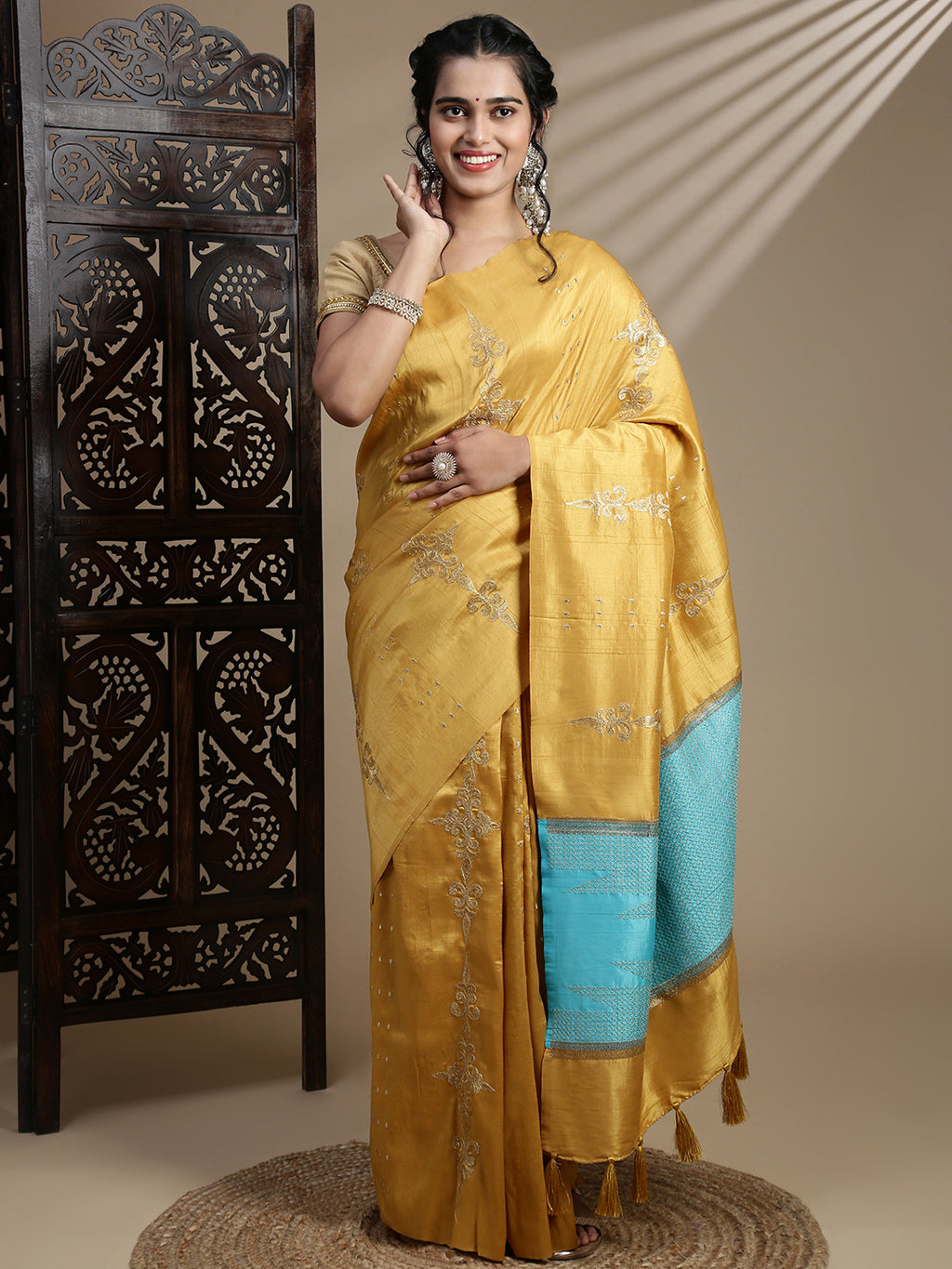 Women Mustard Semi Tussar Embroidered Saree ST315