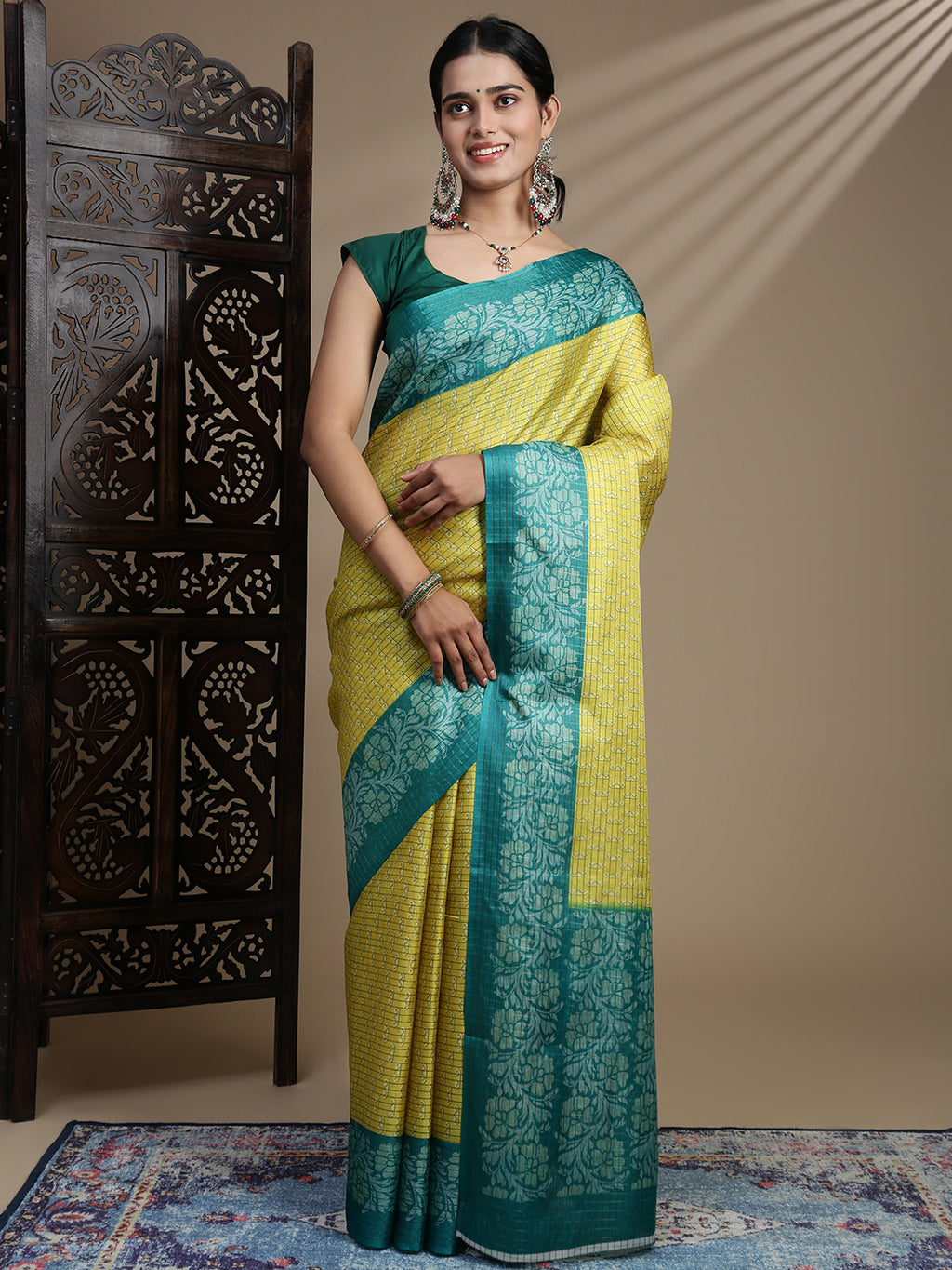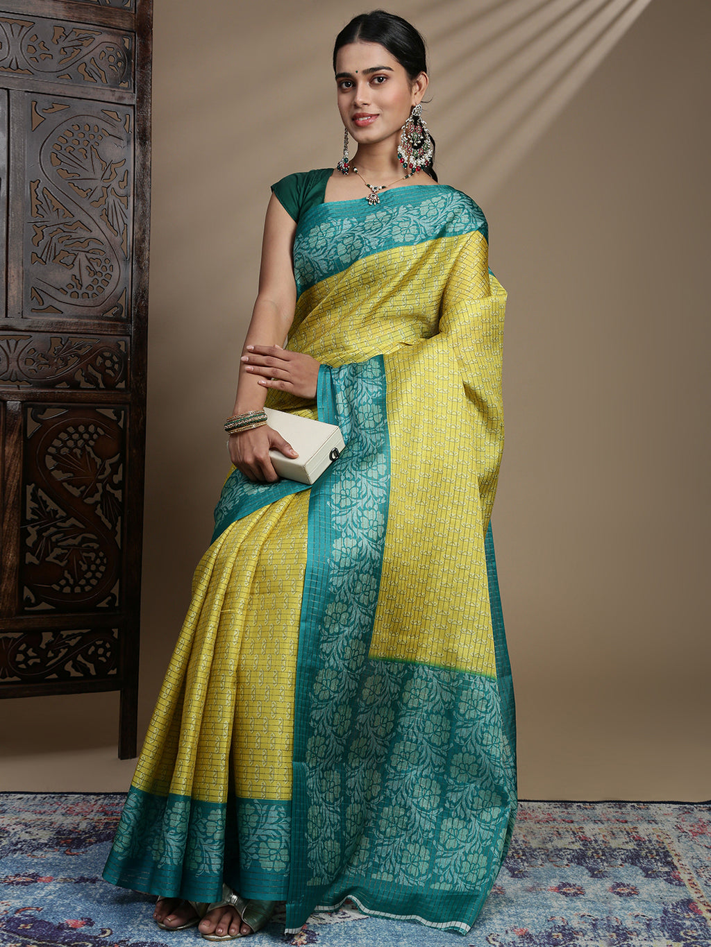 A semi tussar saree beautifully blends the richness of tussar silk with lightweight comfort, creating a fabric that drapes gracefully while retaining a subtle natural sheen. Known for its slightly textured feel and elegant fall, this saree offers the perfect balance of tradition and practicality.