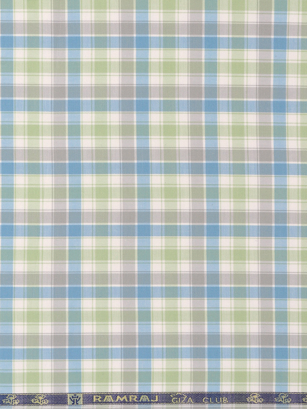 Men Giza Cotton Blend Checked Shirt Fabric Light Green with Blue Cascade