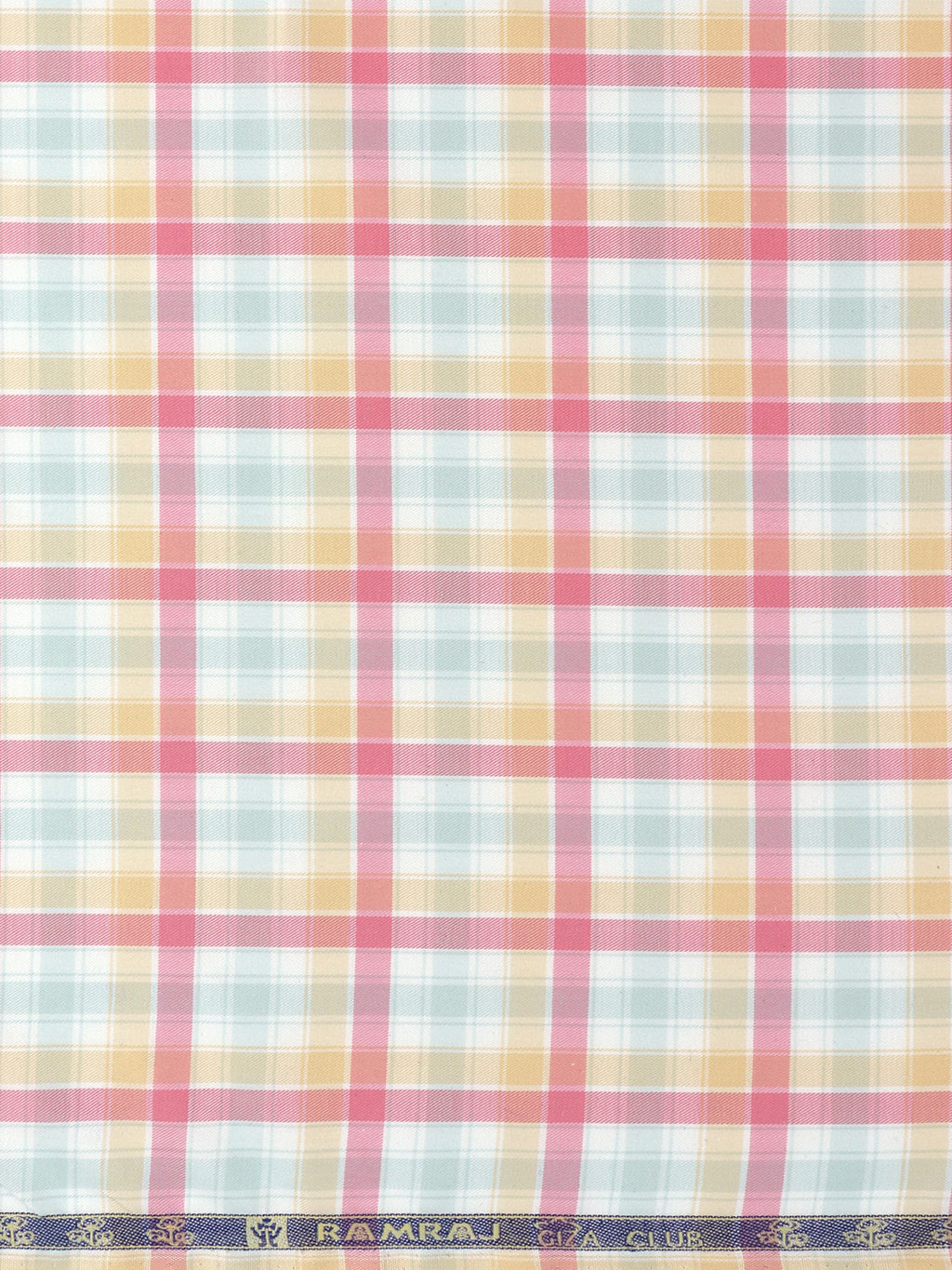 Men Giza Cotton Blend Checked Shirt Fabric Light Pink Cascade