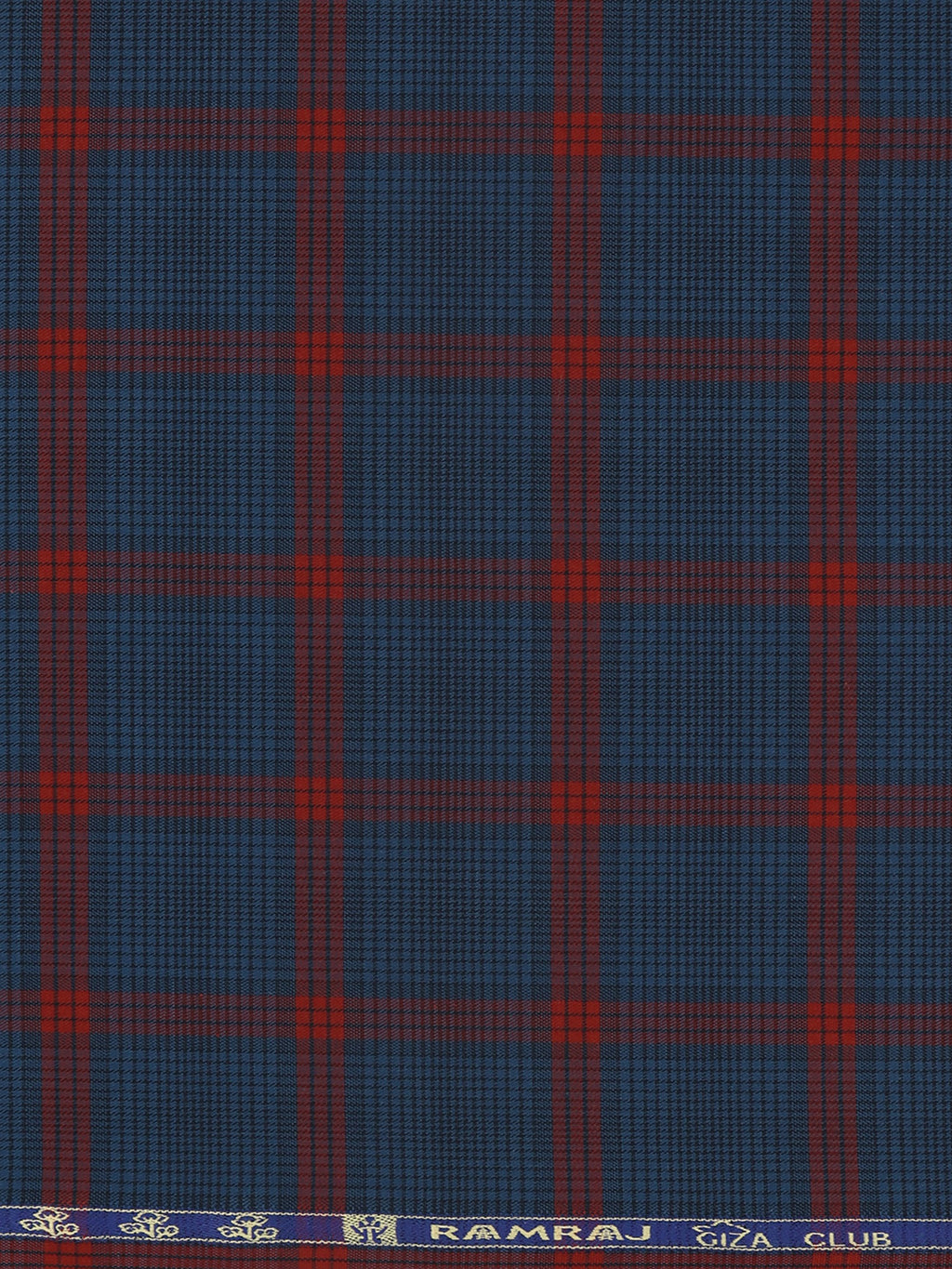 Men Giza Cotton Blend Checked Shirt Fabric Navy with Red Cascade