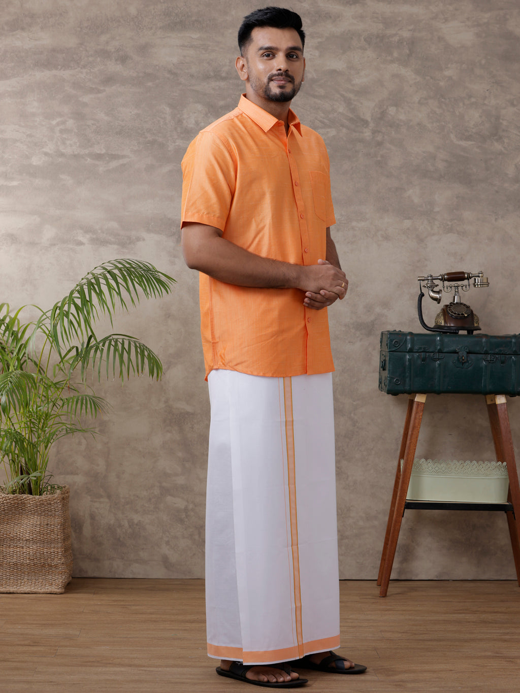 Mens Vetti Vaaram Matching Border Dhoti & Shirt Combo Orange
