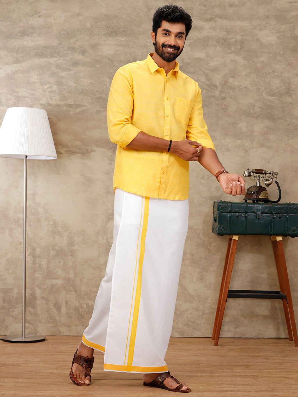 Mens Vetti Vaaram Matching Border Dhoti & Shirt Combo Yellow