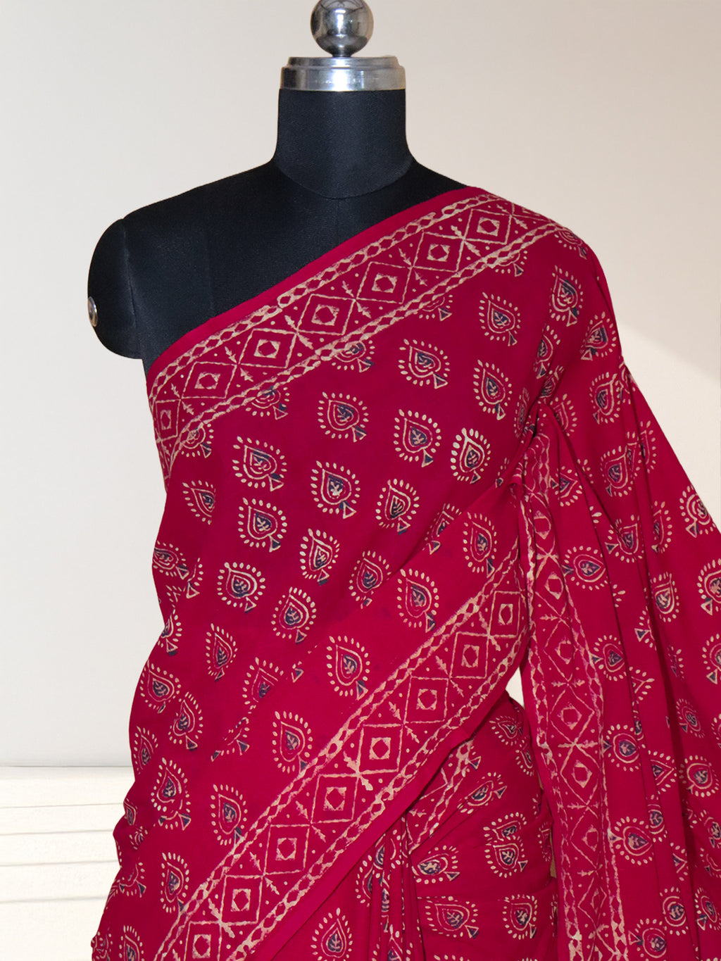 Women Cherry Red Soft Cotton Printed Saree SCS167