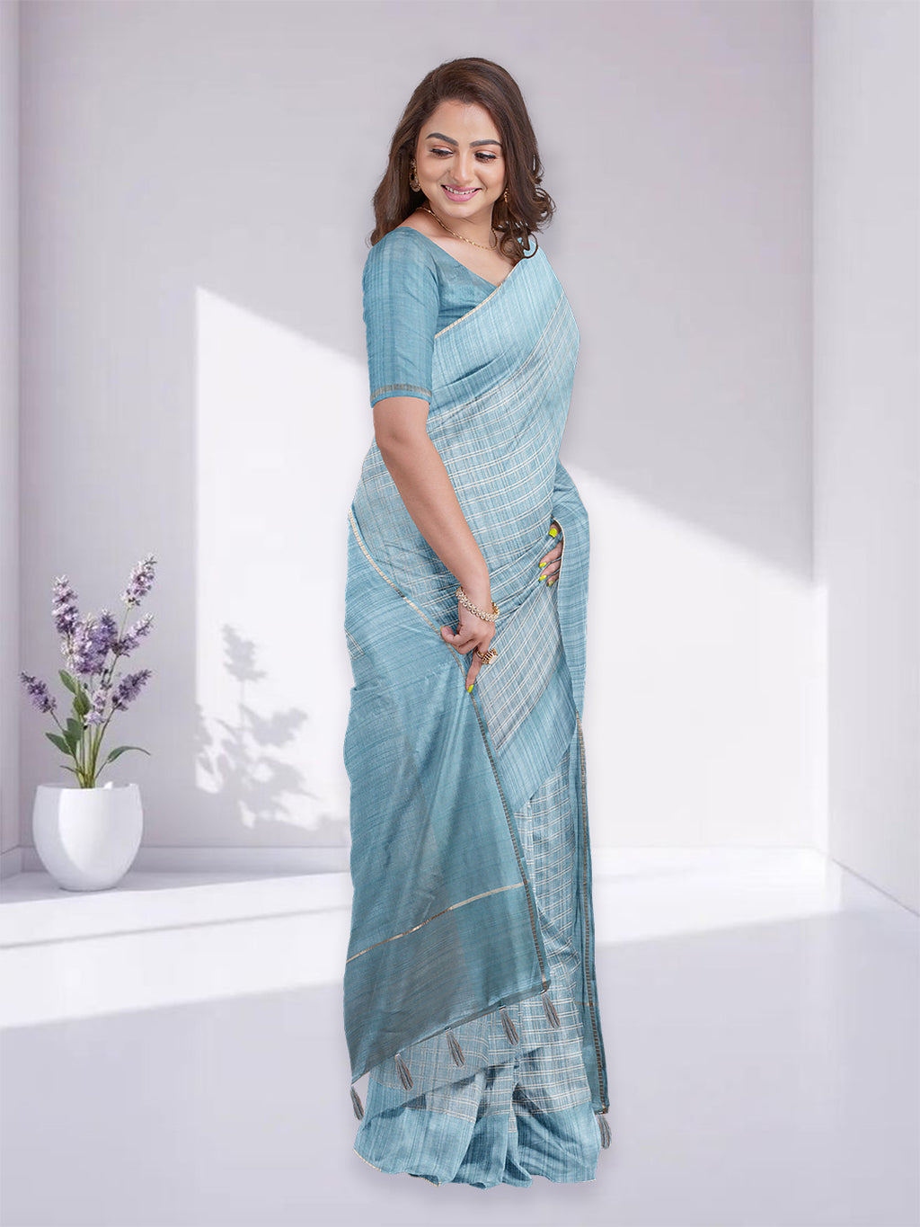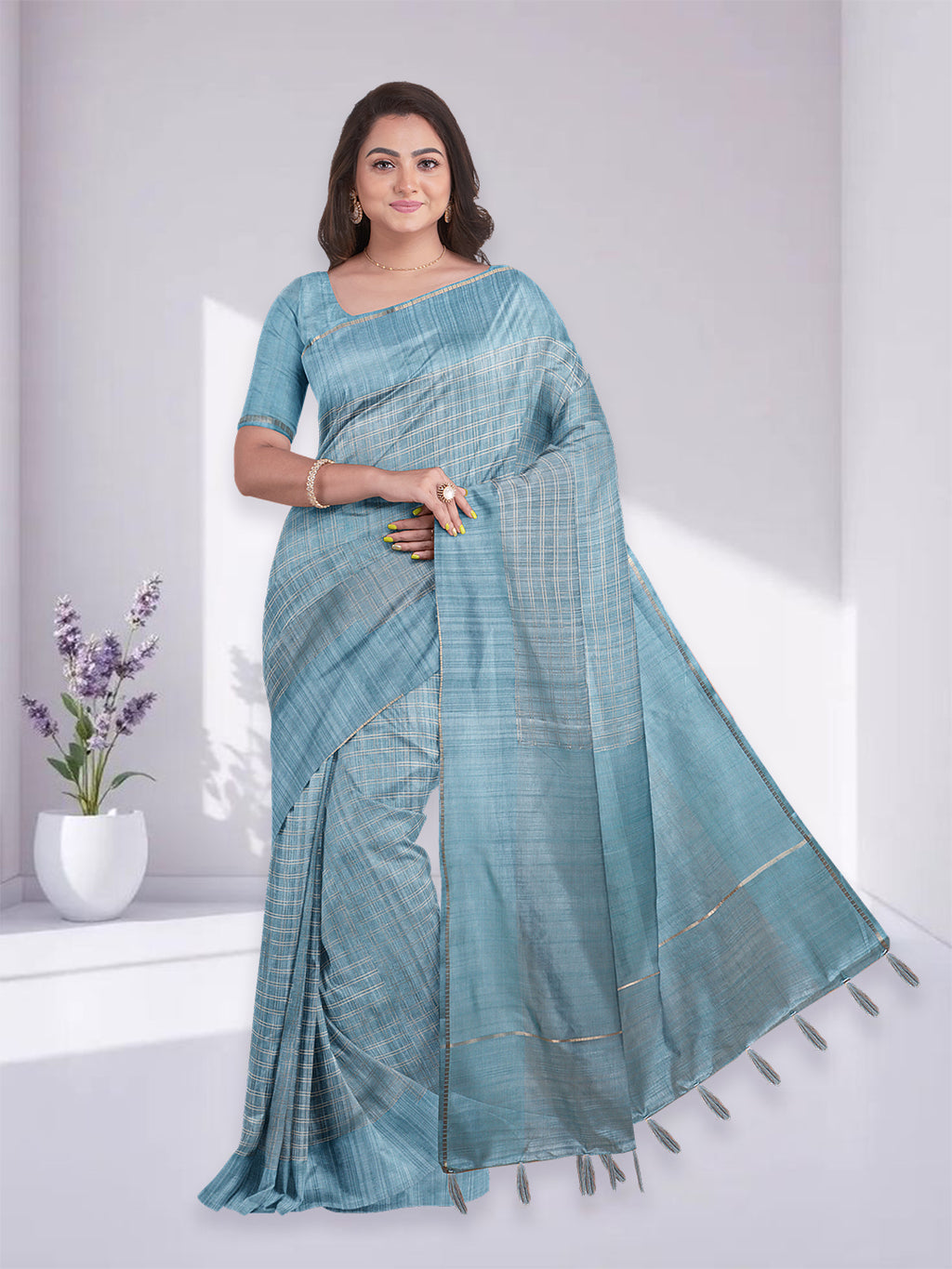 Discover the allure of our semi tussar sarees, where the rustic charm of tussar silk meets the soft comfort of blended fabrics. Crafted to offer the rich texture and natural sheen of pure tussar silk with enhanced durability and ease of draping, these sarees are ideal for those who appreciate timeless elegance with a modern touch.
