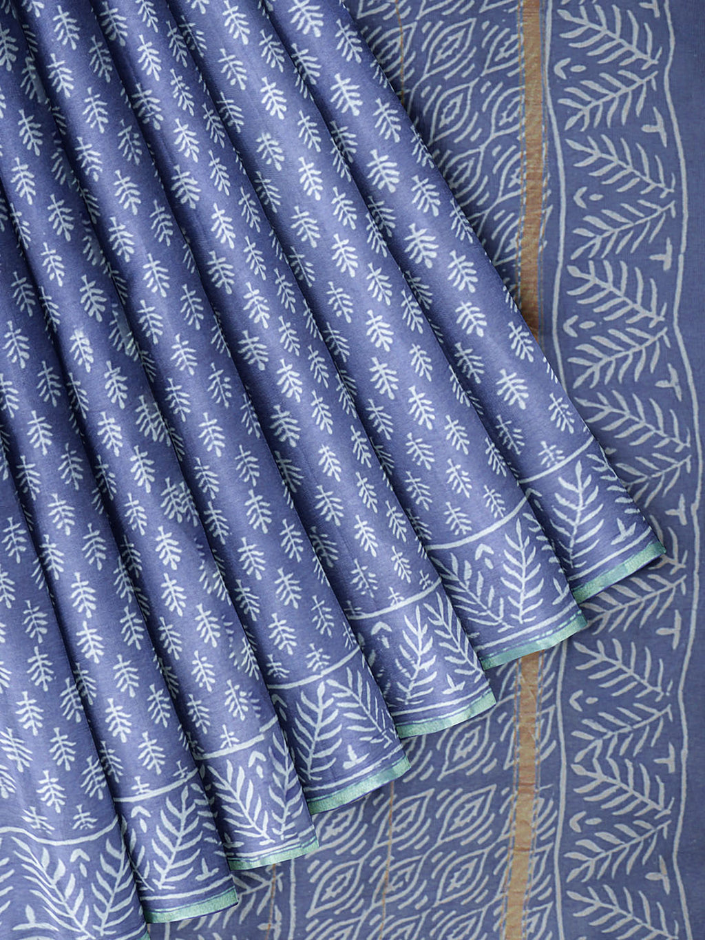 Women Light Blue Semi Chanderi Cotton Printed Saree SC70