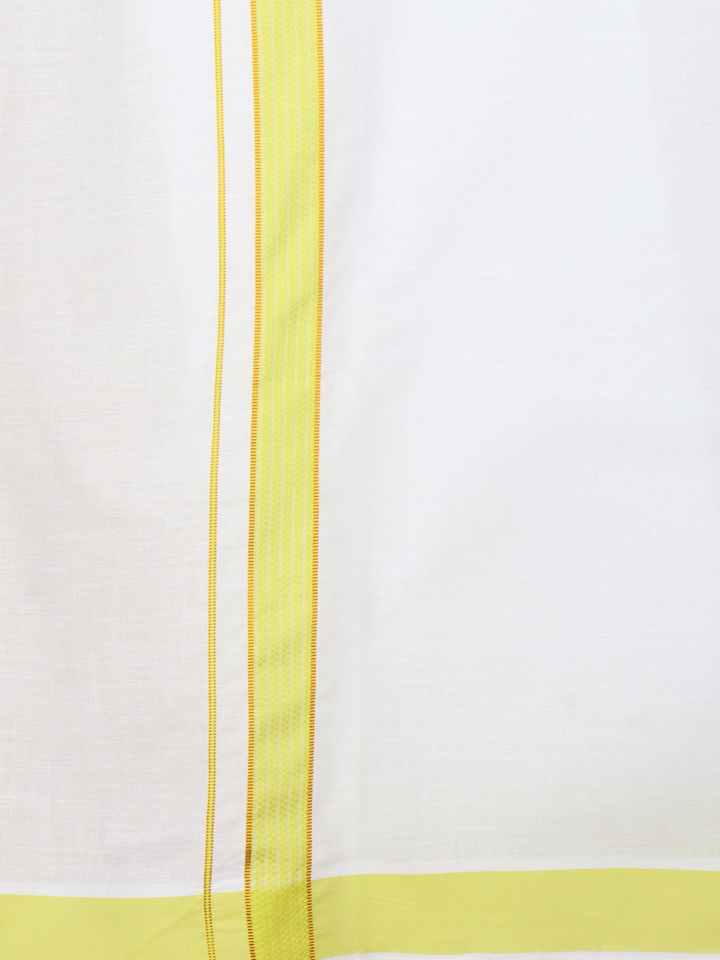 Men Cotton Blend Readymade Single Layer White Dhoti with Fancy Jari Border GACJ39
