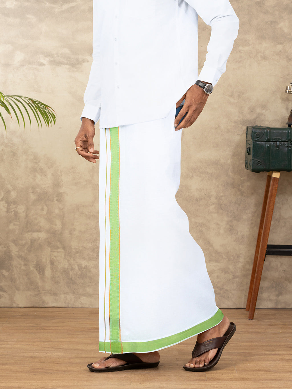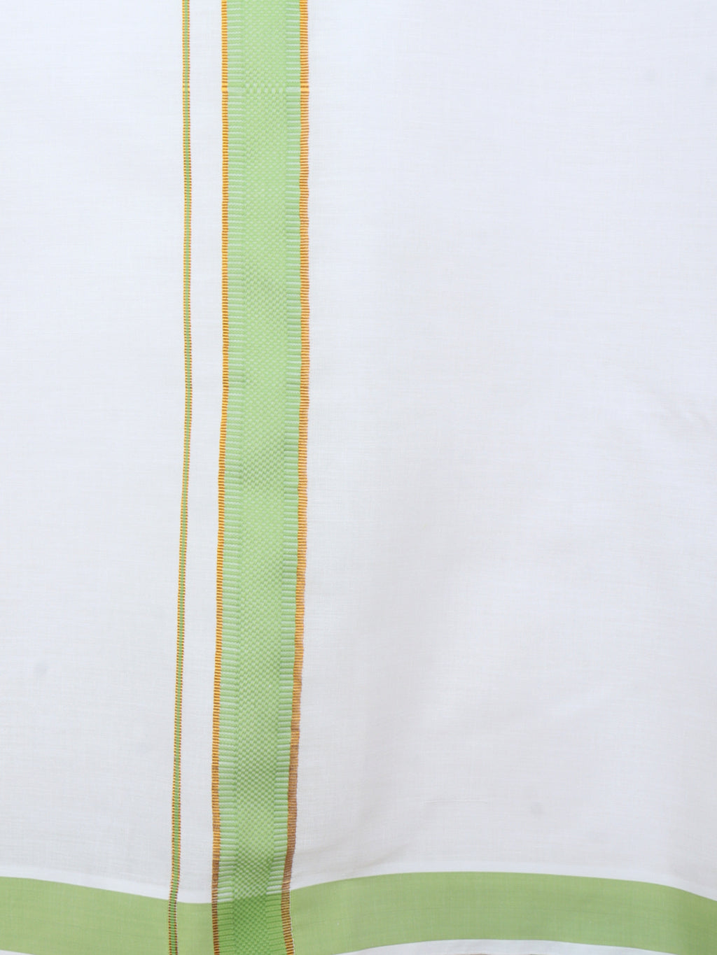 Men Cotton Blend Readymade Single Layer White Dhoti with Fancy Jari Border GACJ45