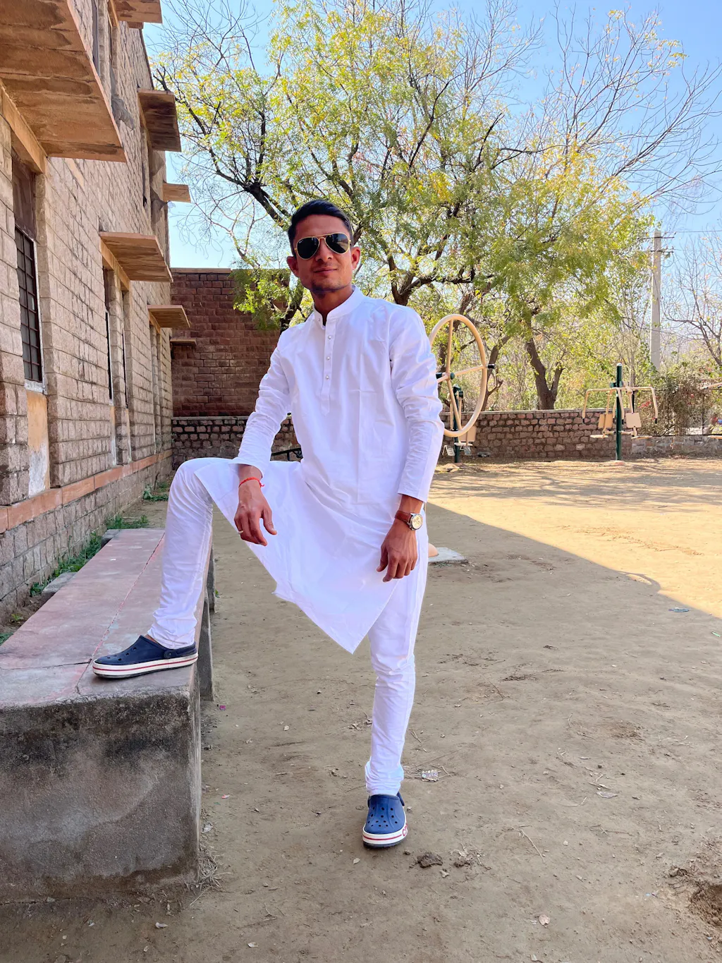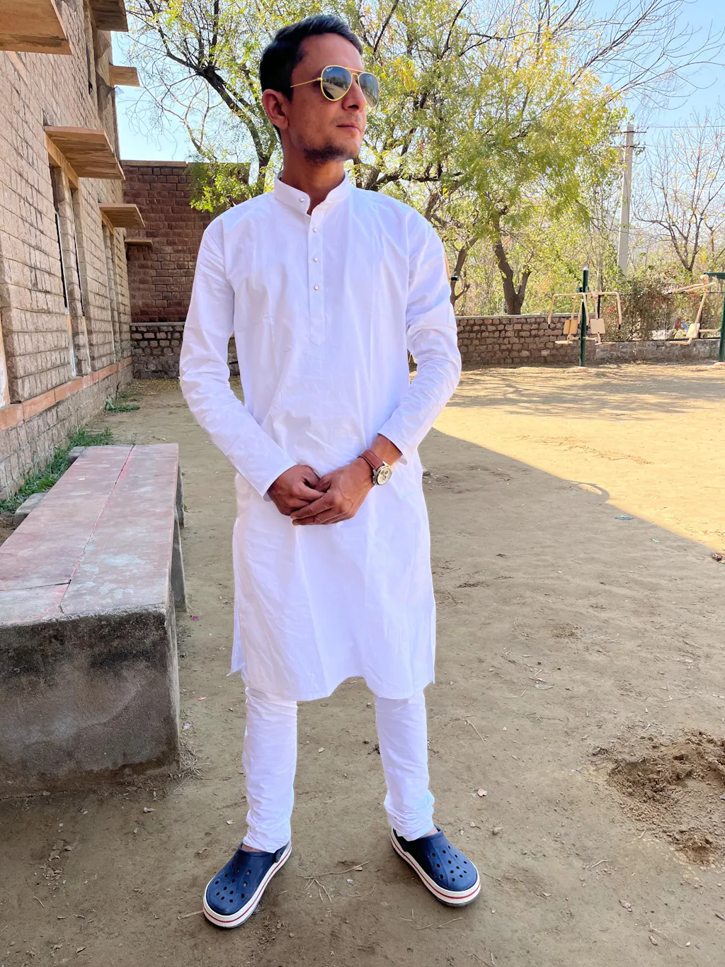 The kurta and pyjama set is crafted from high-quality cotton fabric that ensures maximum comfort, breath ability, and durability, making it perfect for long hours of wear.The kurta features a timeless and classic design with a mandarin collar and full sleeves, giving it an elegant and sophisticated look. The classic collar and front placket adds a touch of traditional charm and grace to the overall outfit.The pyjama features a relaxed fit and an rop waistband, making it comfortable and easy to wear. This White Kurta and Pyjama Set is perfect for any formal or festive occasion, such as weddings, receptions, or religious ceremonies.
