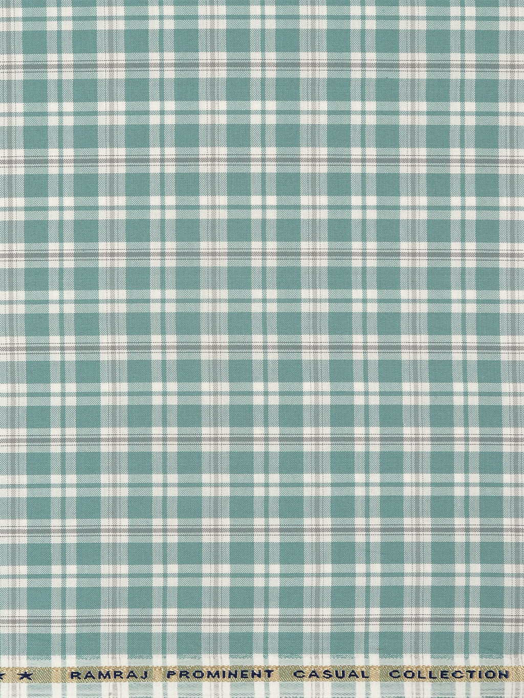 Men Cotton Rich Checked Shirt Fabric Teal Green High Style