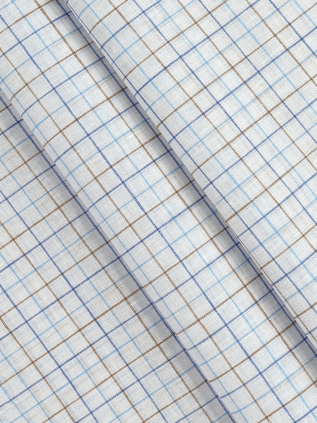 Men Cotton Rich Checked Shirt Fabric White with Blue High Style