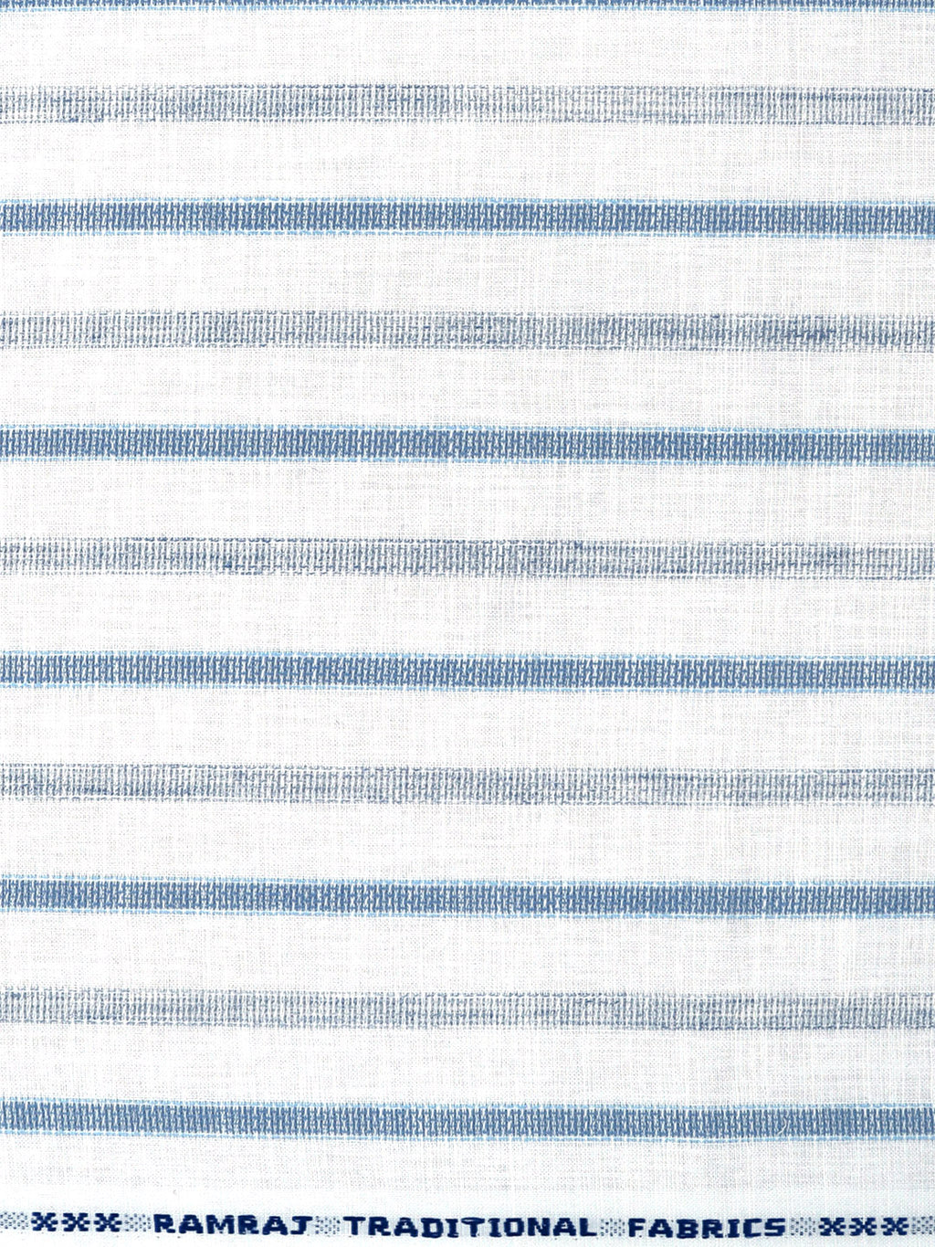 Men Cotton Rich Striped Shirt Fabric White with Blue Infinity