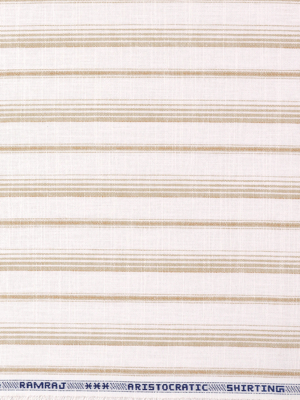 Men Cotton Rich Striped Shirt Fabric White with Brown Infinity