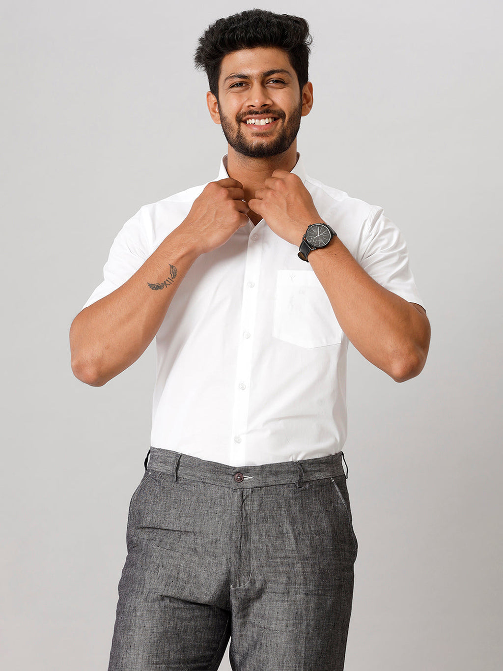 Men Cotton Spandex 2 Way Stretch Shirt White