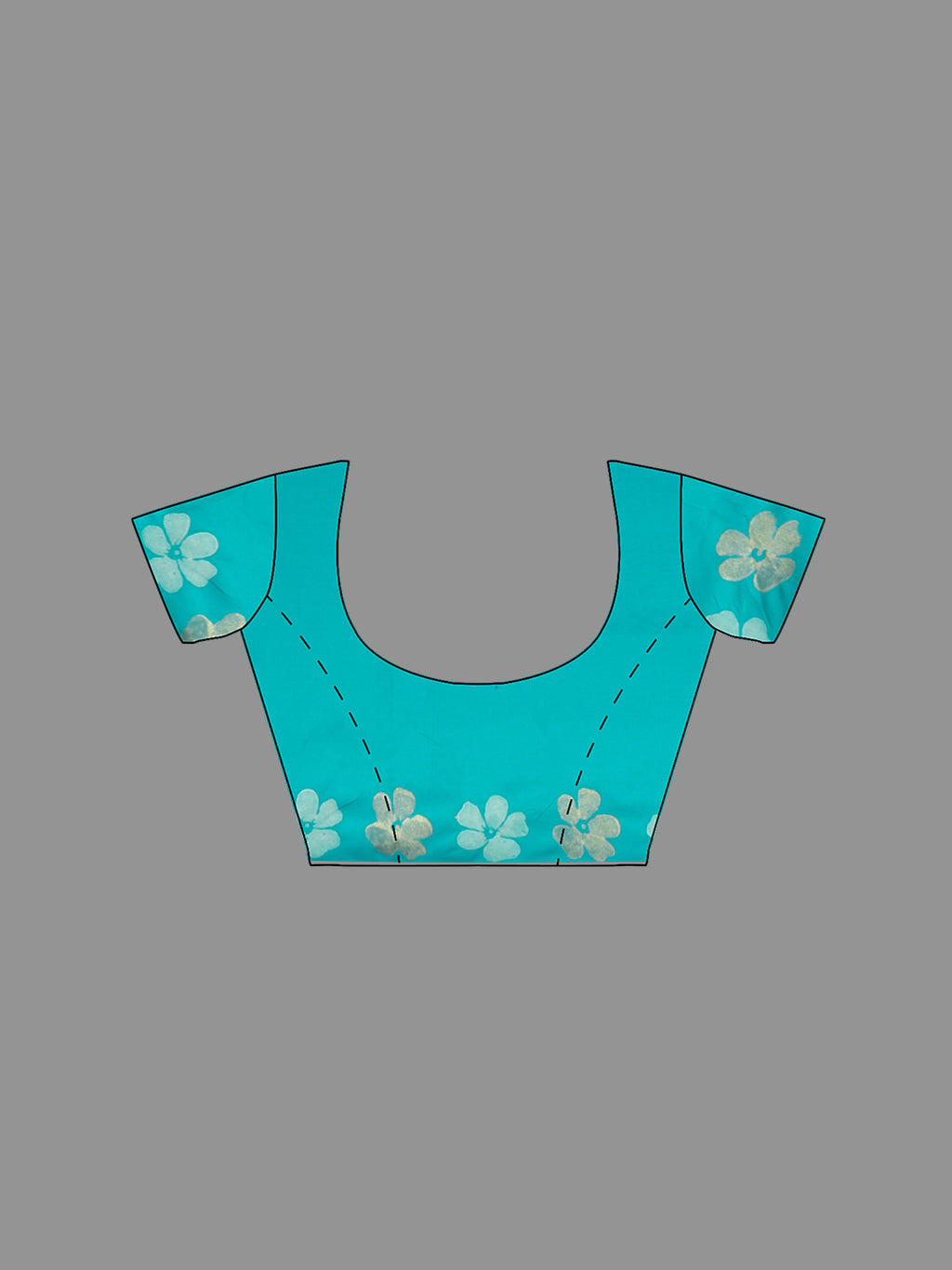 Women SkyBlue Cotton Saree with Double Blouse PCS209