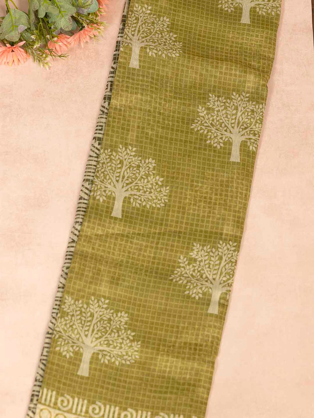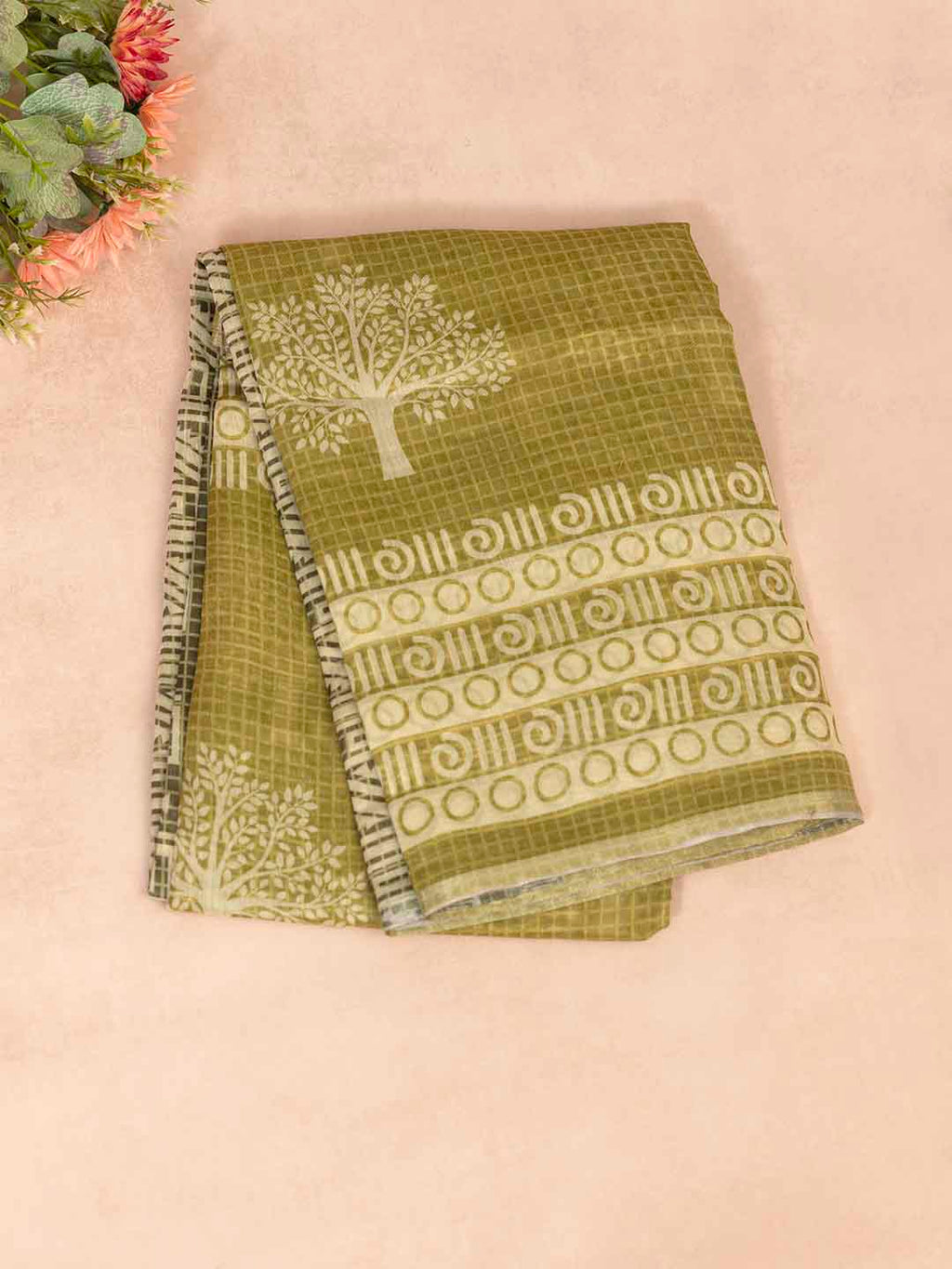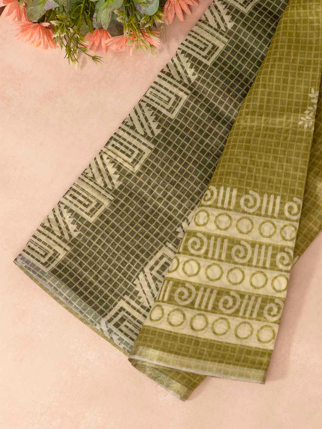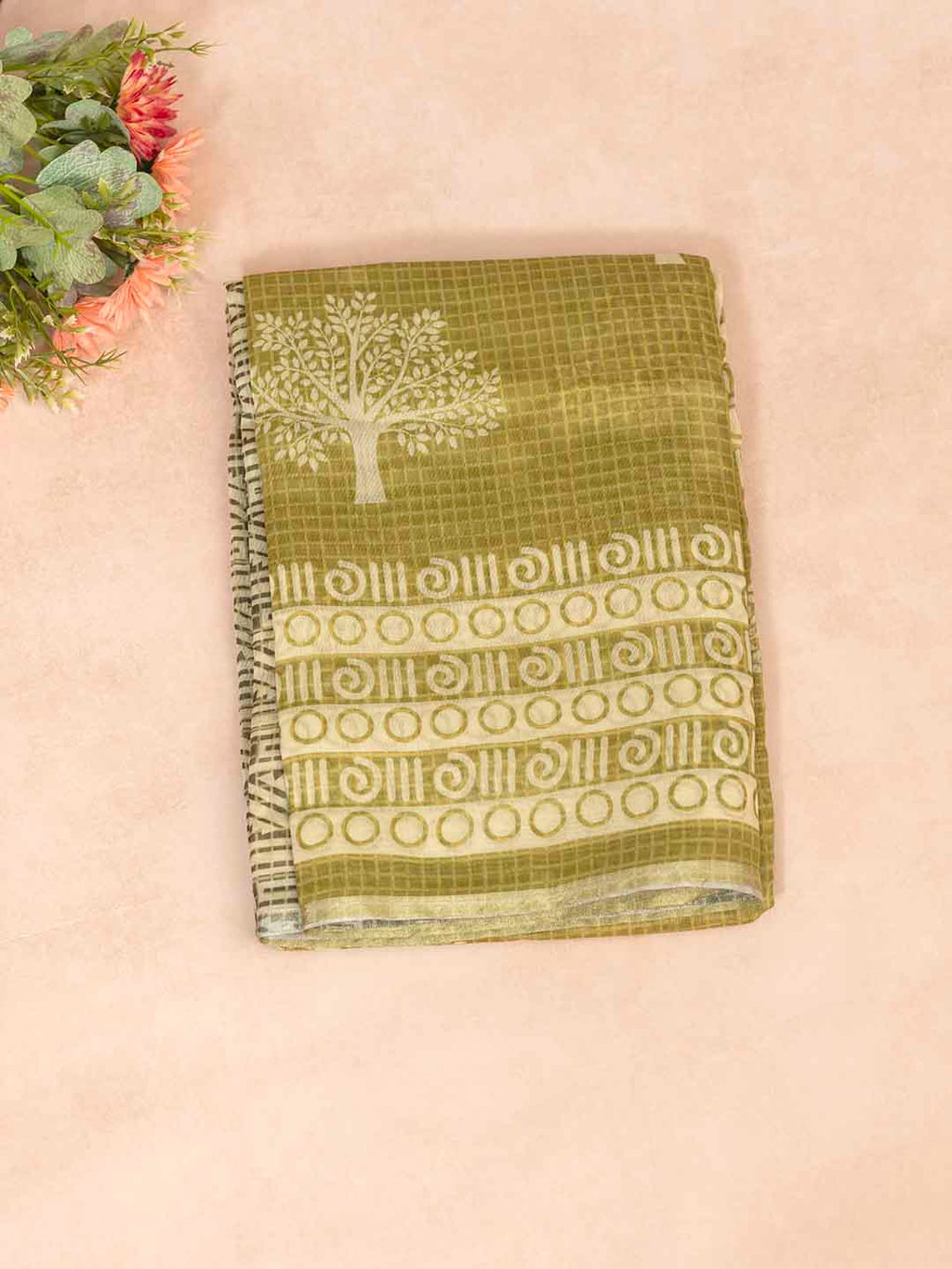 Women Green Semi Chanderi Cotton Printed Saree SC43