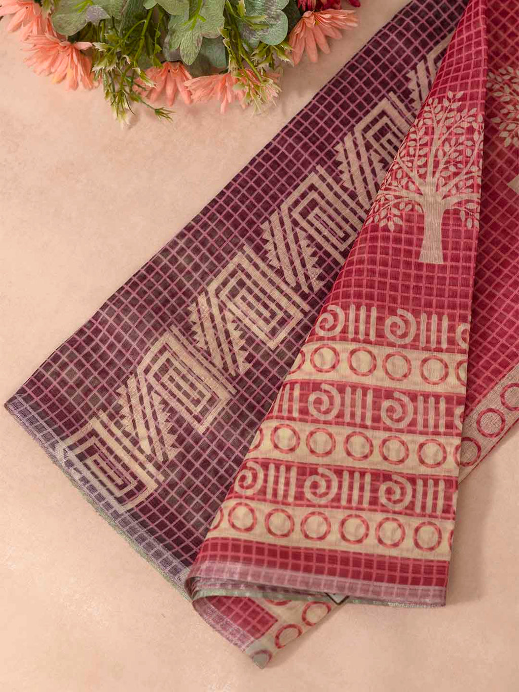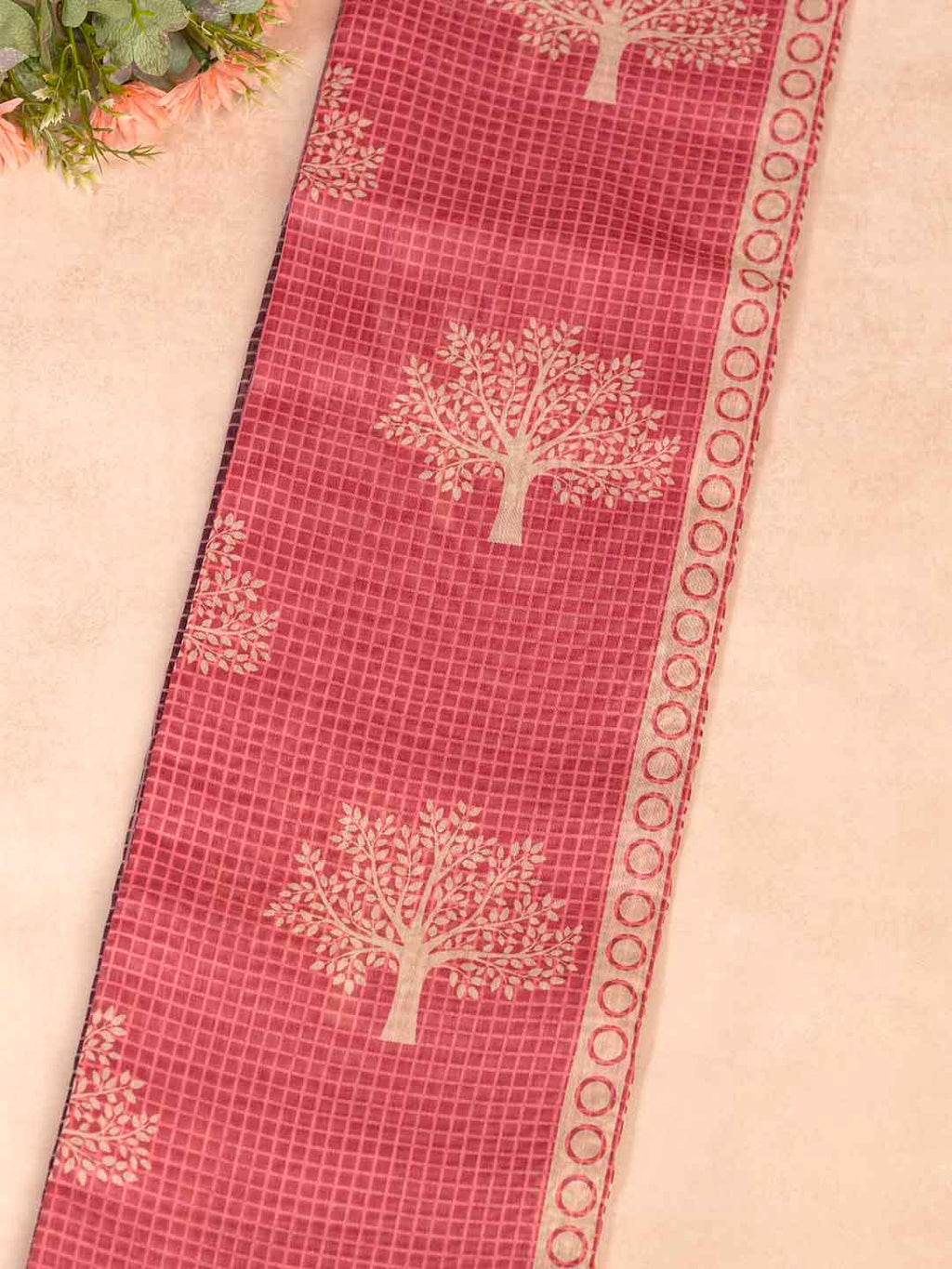Women Pink Semi Chanderi Cotton Printed Saree SC45