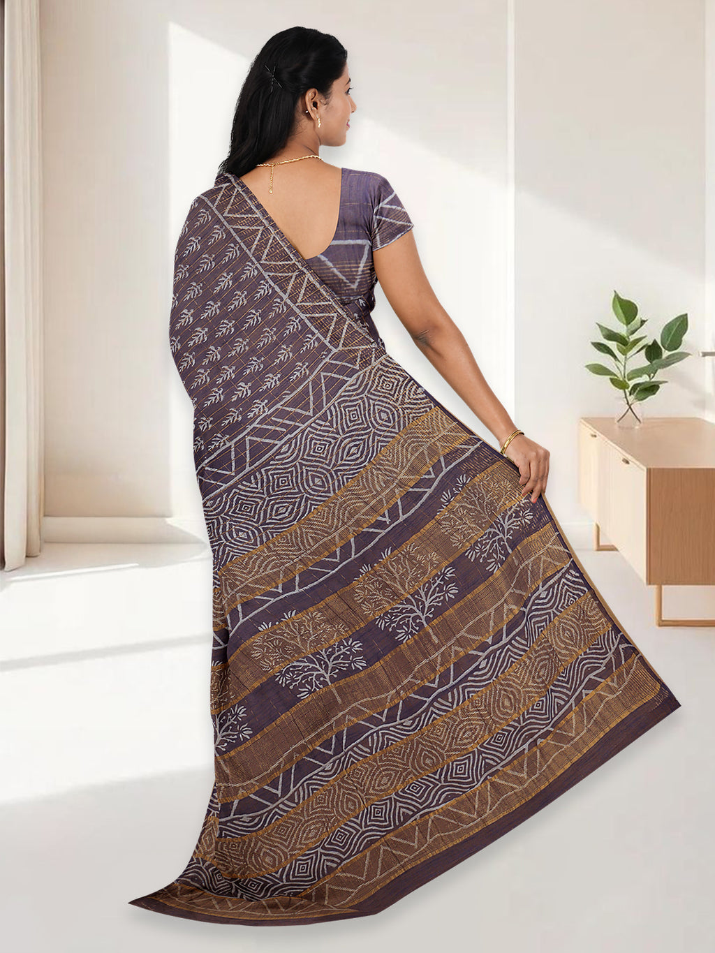 Women Violet Semi Linen Saree SL229